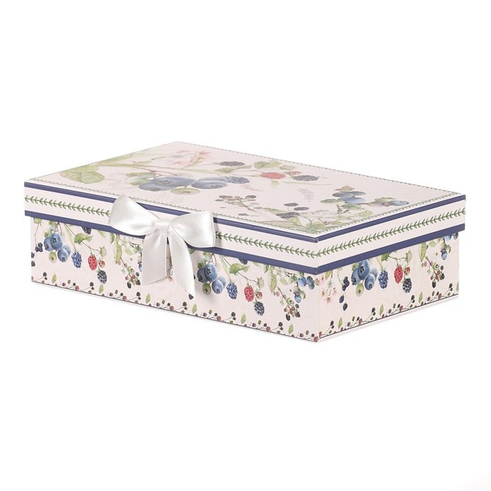 Udělejte radost druhým, nebo i sami sobě, darováním nádherně malovaného setu dvou hrnků s podšálky z porcelánu v dárkové krabičce. S pestrobarevným motivem lesních plodů na bílém pozadí, se budou na jakékoli poličce skutečně vymykat. Krabička samotná i obsah v ní má totožný ozdobný motiv, na který je radost se dívat.
