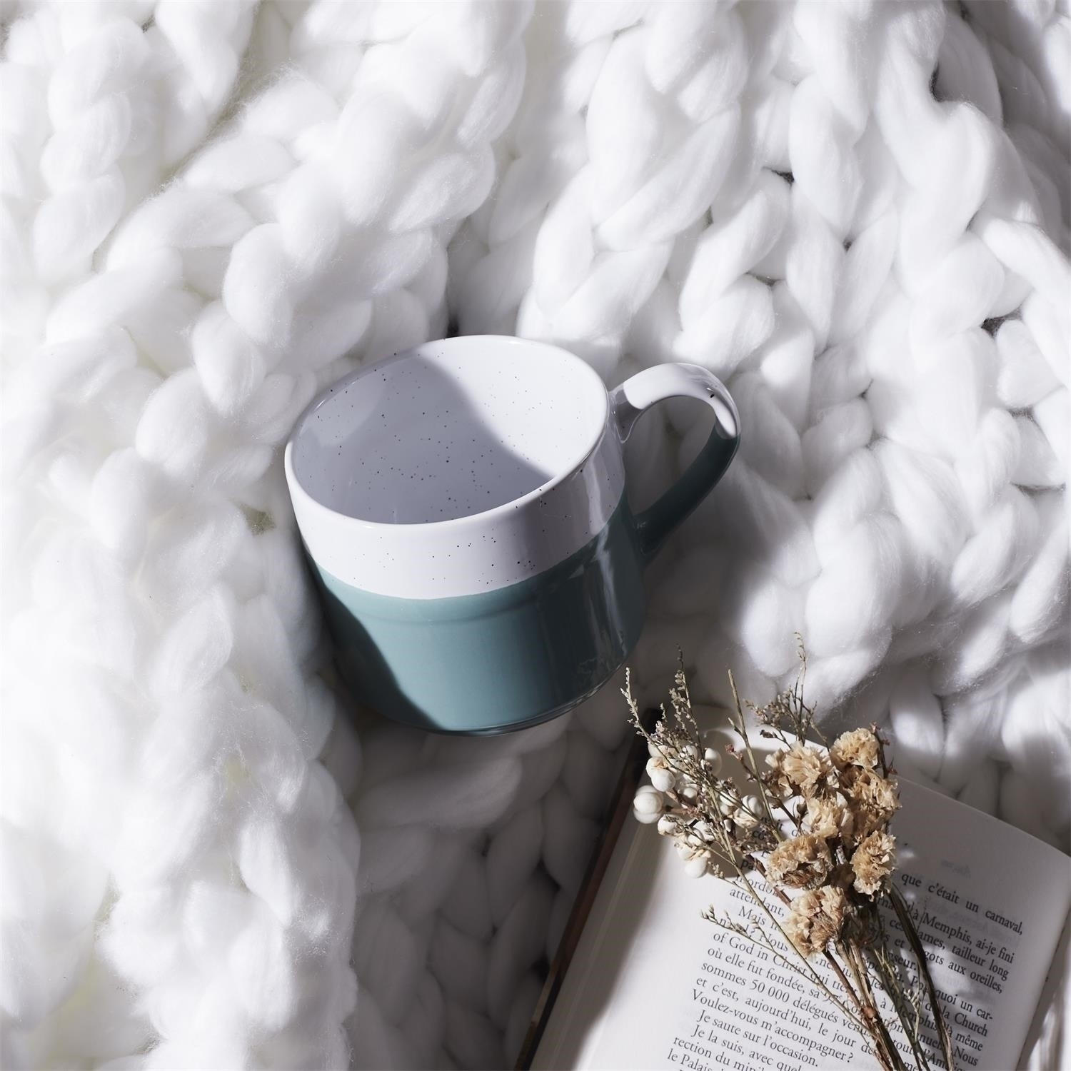 Hrnek Jumelle je zajímavý dvoubarevný hrnek ve stylu japandi. Minimalistická forma nádoby o objemu 330 ml bude ideální pro podávání kávy nebo čaje. Hrnek vypadá, jako by byl namočený v barvivu. Světlá část hrnku je ozdobena drobnými černými tečkami. Lze používat v myčce nádobí a v mikrovlnné troubě. Dostupné ve 4 barvách