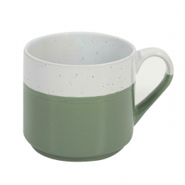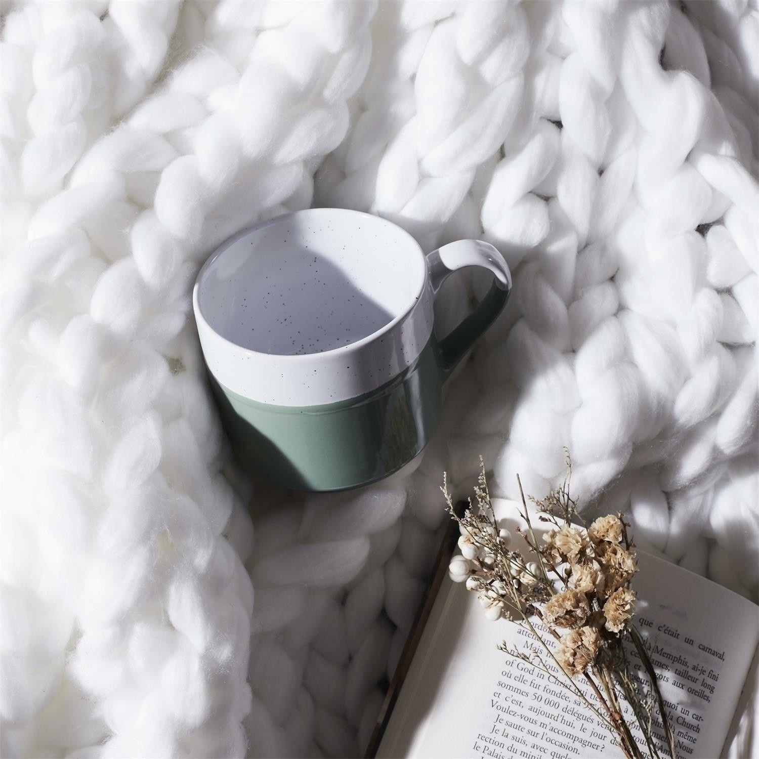 Hrnek Jumelle je zajímavý dvoubarevný hrnek ve stylu japandi. Minimalistická forma nádoby o objemu 330 ml bude ideální pro podávání kávy nebo čaje. Hrnek vypadá, jako by byl namočený v barvivu. Světlá část hrnku je ozdobena drobnými černými tečkami. Lze používat v myčce nádobí a v mikrovlnné troubě. Dostupné ve 4 barvách