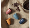 Hrnek na espresso o objemu 80 ml zaručuje zajímavě podávaný nápoj. Hrnek byl vyroben z keramiky a ozdoben zajímavými rovnoměrnými vzory. Hrnek určený pro styk s potravinami. Hrnek není vhodný do myčky, mikrovlnné trouby, trouby ani mrazáku. Hrnek je k dispozici ve 4 různých barvách. Můžeme si přizpůsobit vlastní sadu výběrem barev, které se hodí k našim interiérům. Max 24 ks v kartonu. Rozměry kartonu: 24,5x18,5x32cm.