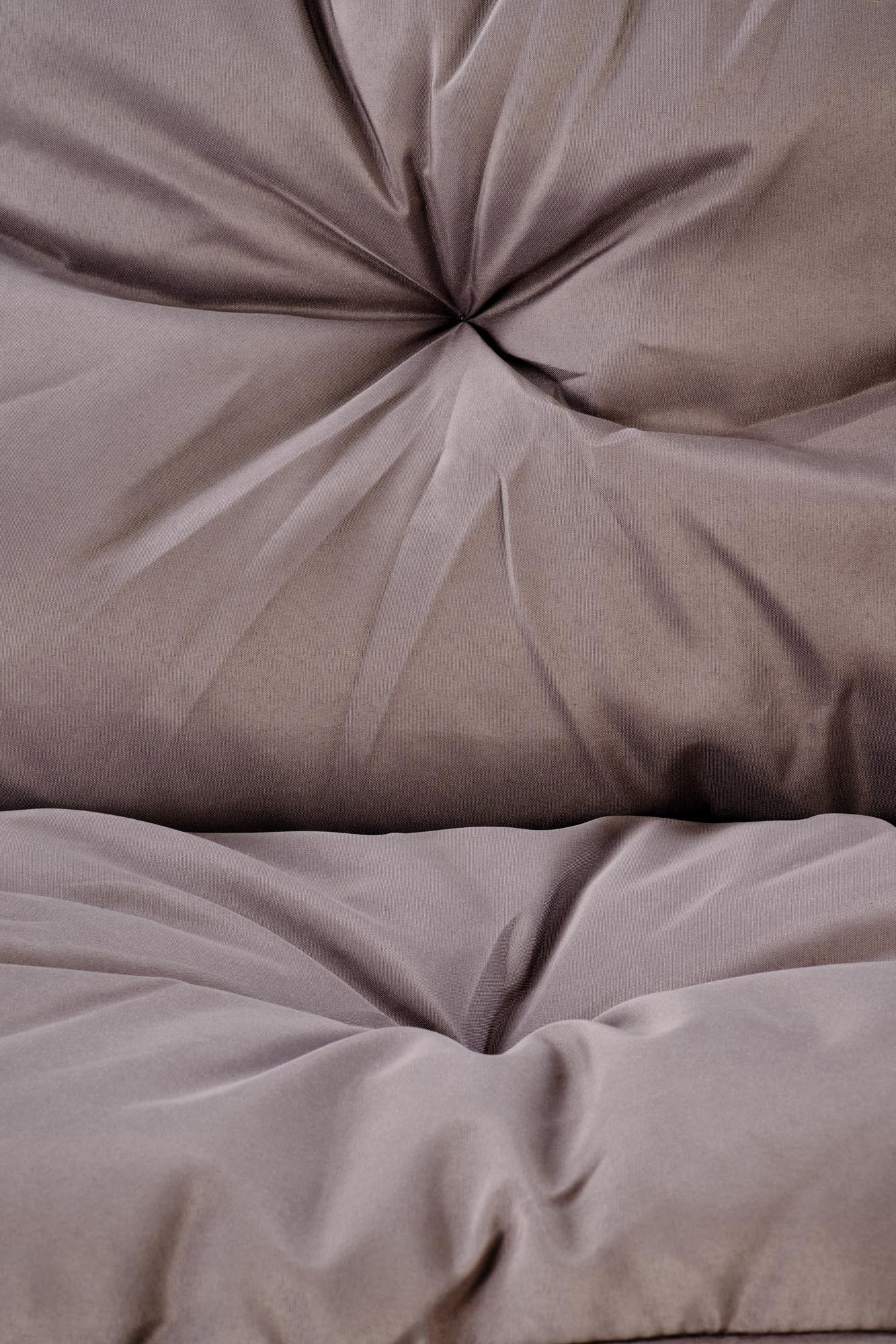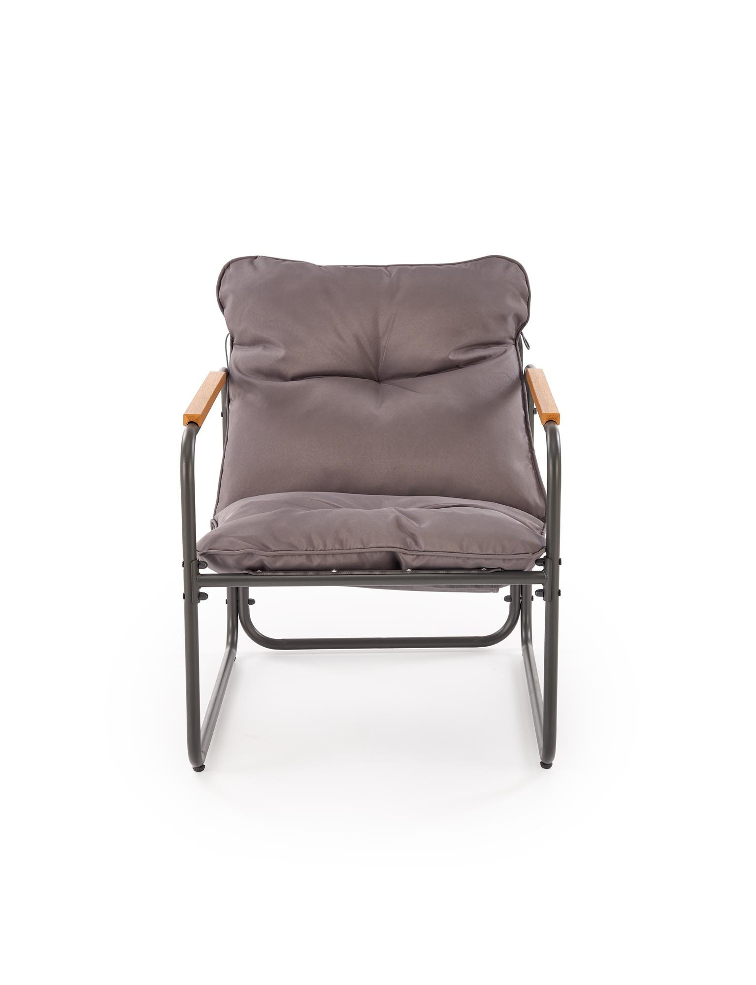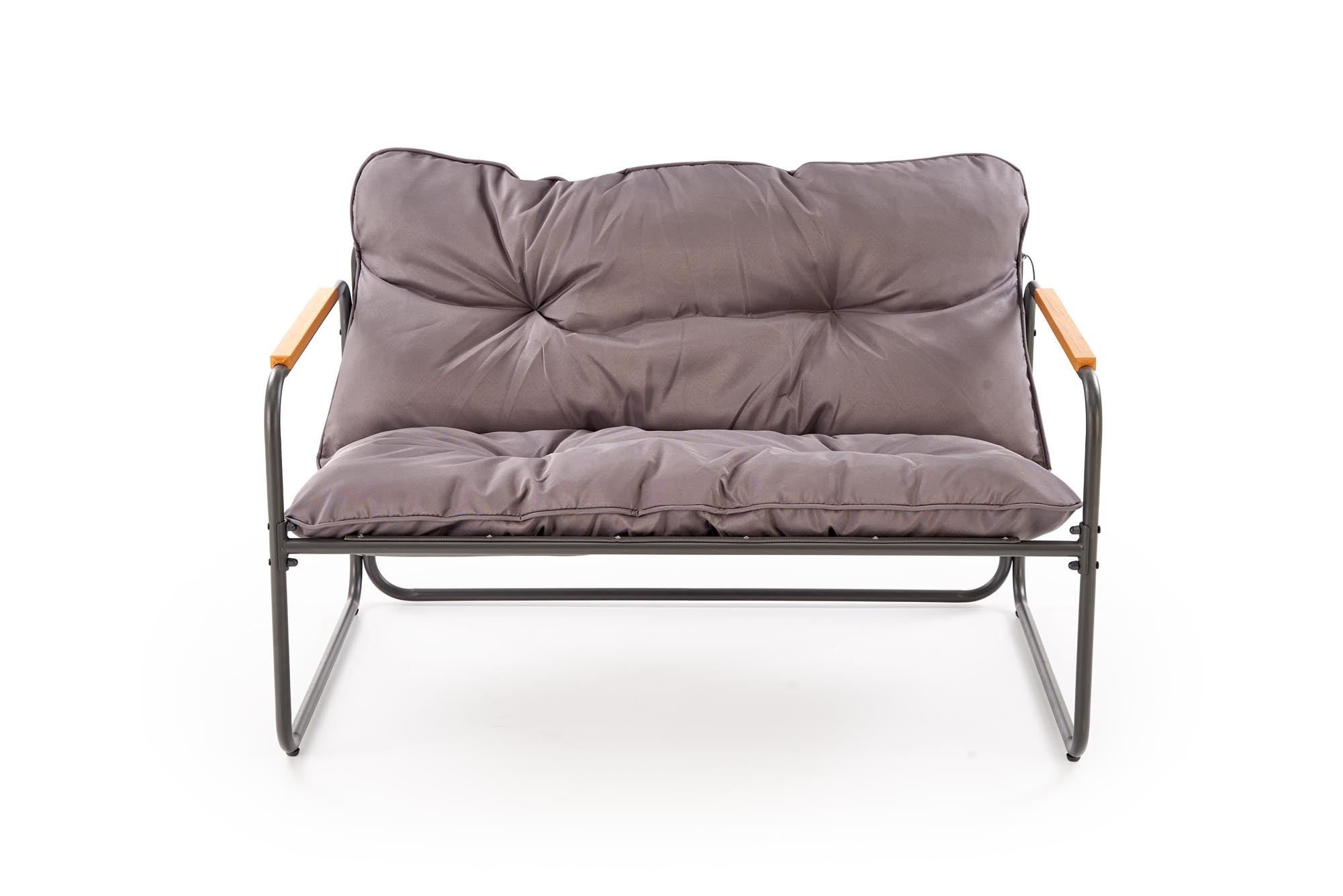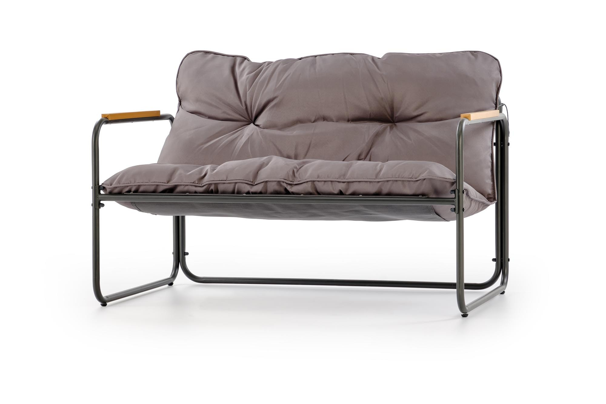 zahradní souprava (pohovka, 2x křeslo, stolek) materiál: práškově lakovaná ocel / síťovina / tkanina / sklo / polystyren, barva: popelavá - hnědá