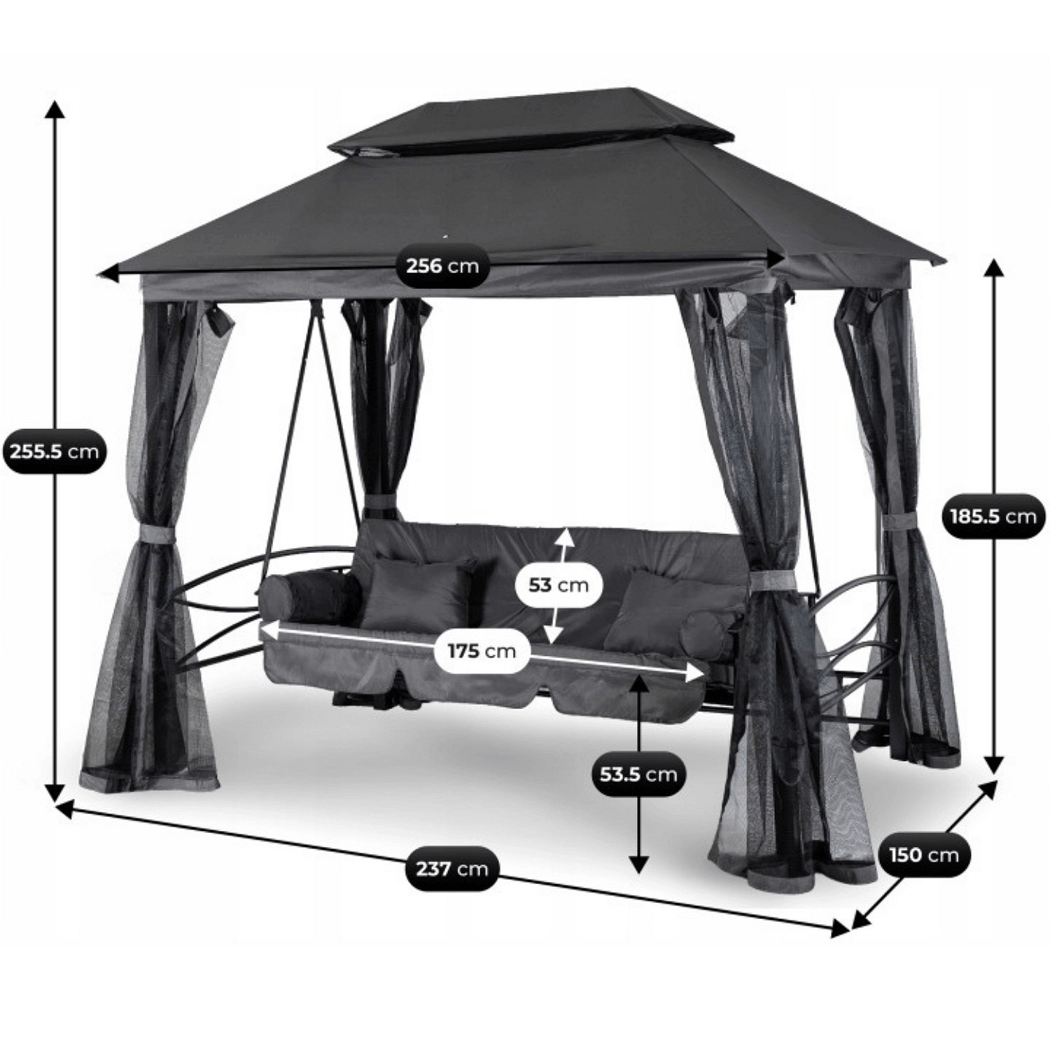 Zahradní houpačka CARMEN Šedá/Černá