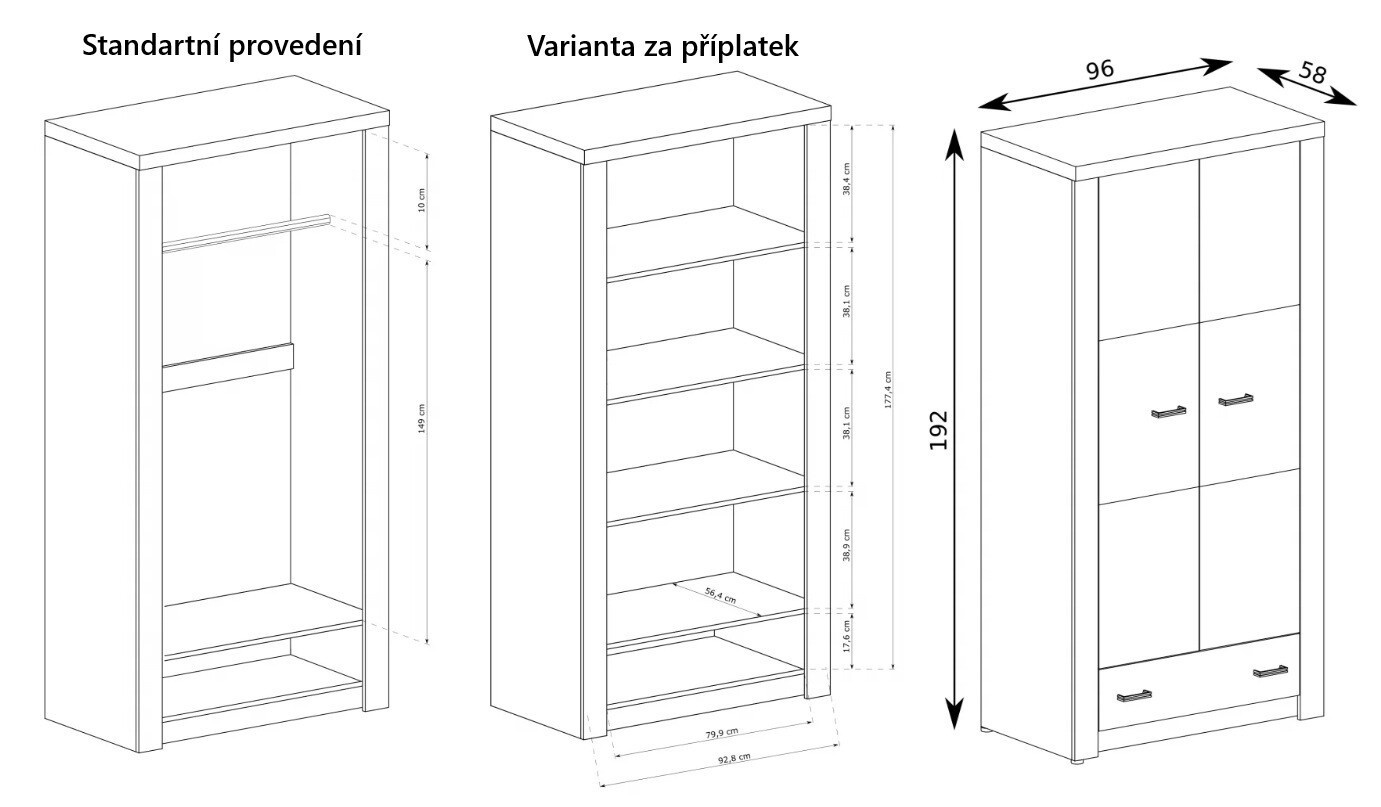 - Typ skříně: 2-dveřová skříň