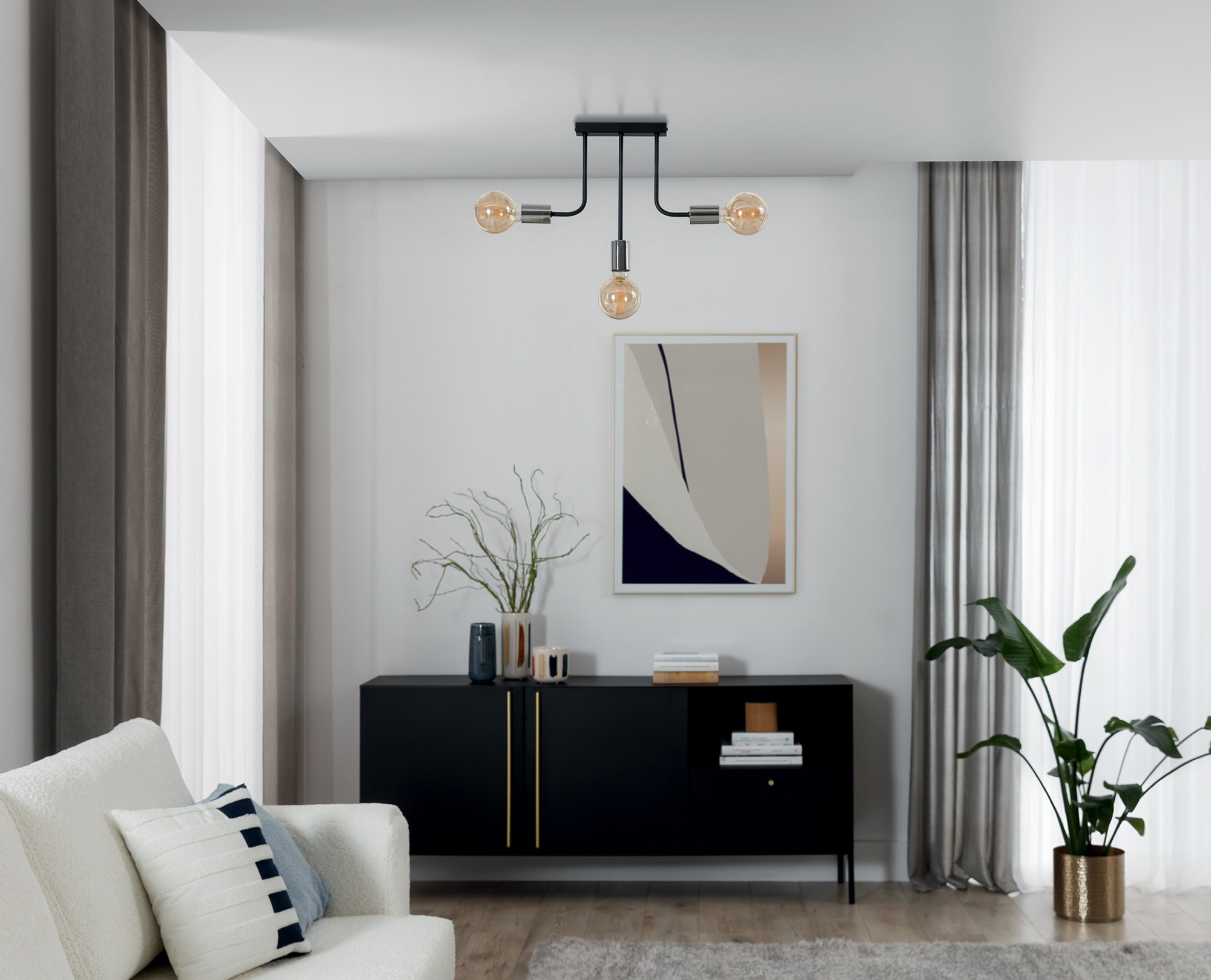 Stropní svítidlo Indigeo je výjimečný osvětlovací prvek, který dokonale vnáší eleganci a modernost do vašeho prostoru. Jeho rozměry jsou šířka 48 cm, délka 42 cm a hloubka 8 cm, což z něj činí vynikající volbu pro různé místnosti. Vyrobeno z odolné oceli, stropní světlo představuje solidní řemeslné zpracování, které zajišťuje nejen estetický vzhled, ale také dlouhotrvající odolnost. Tři světelné body poskytují dostatečné osvětlení pro efektivní osvětlení místnosti. Každá ze tří žárovek používá standardní závit E27, což usnadňuje přístup k různým žárovkám. Maximální povolený světelný výkon 15 W přispívá k energeticky úspornému osvětlení a zároveň zajišťuje pohodlí a atmosféru. Svítidlo má ochrannou třídu IP20, která zajišťuje ochranu proti prachu a dotyku, přičemž umožňuje volnou výměnu vzduchu a tepla. Černá barva stropního svítidla Indigeo mu dodává výrazný charakter, který se bez problémů hodí jak do moderních, tak klasických interiérů. Jeho minimalistický design z něj činí vynikající dekoraci a zdroj světla, který upoutá pozornost a dále obohacuje uspořádání místnosti.