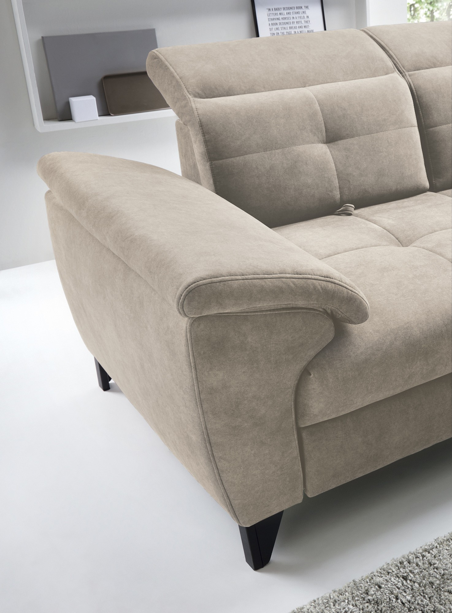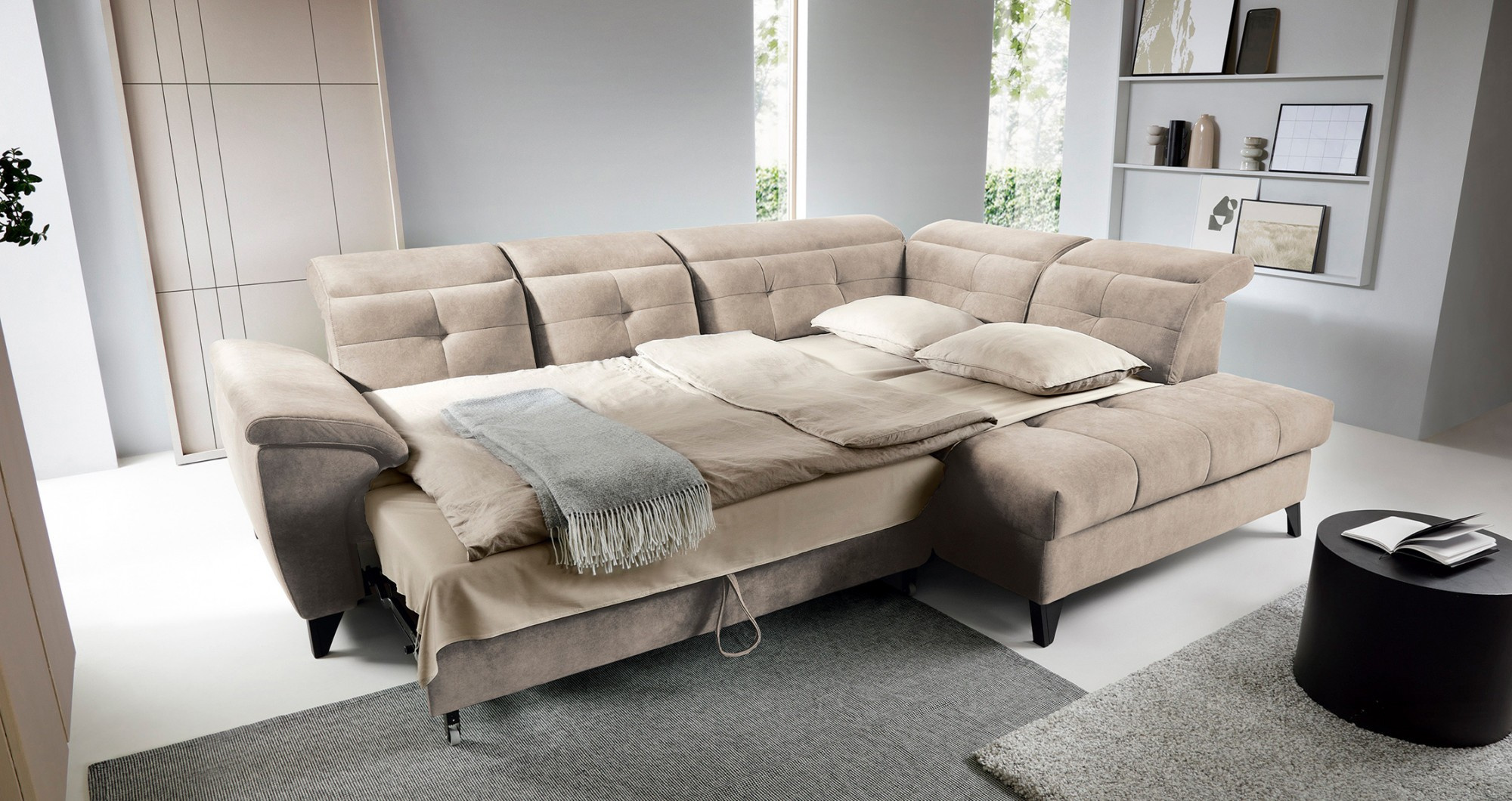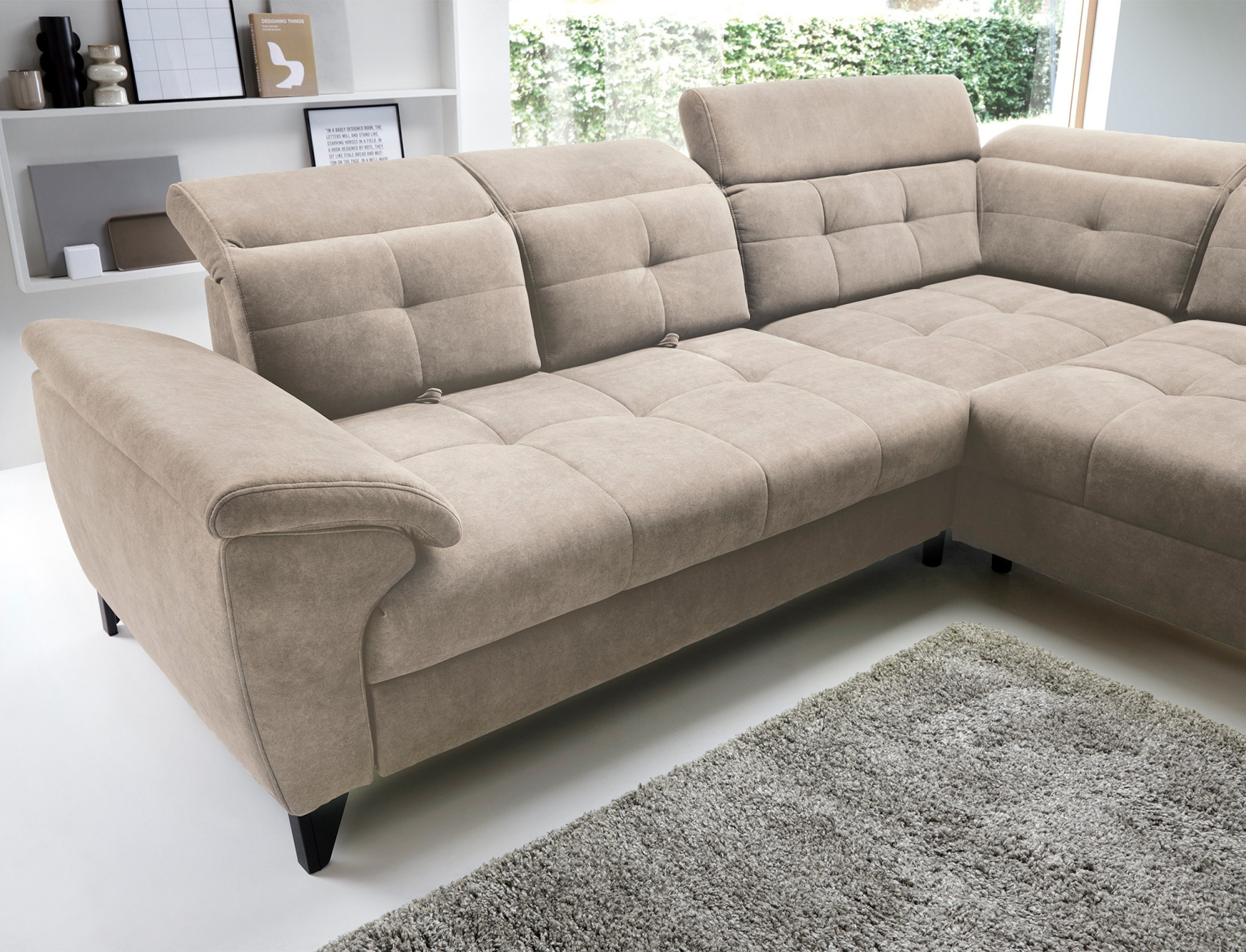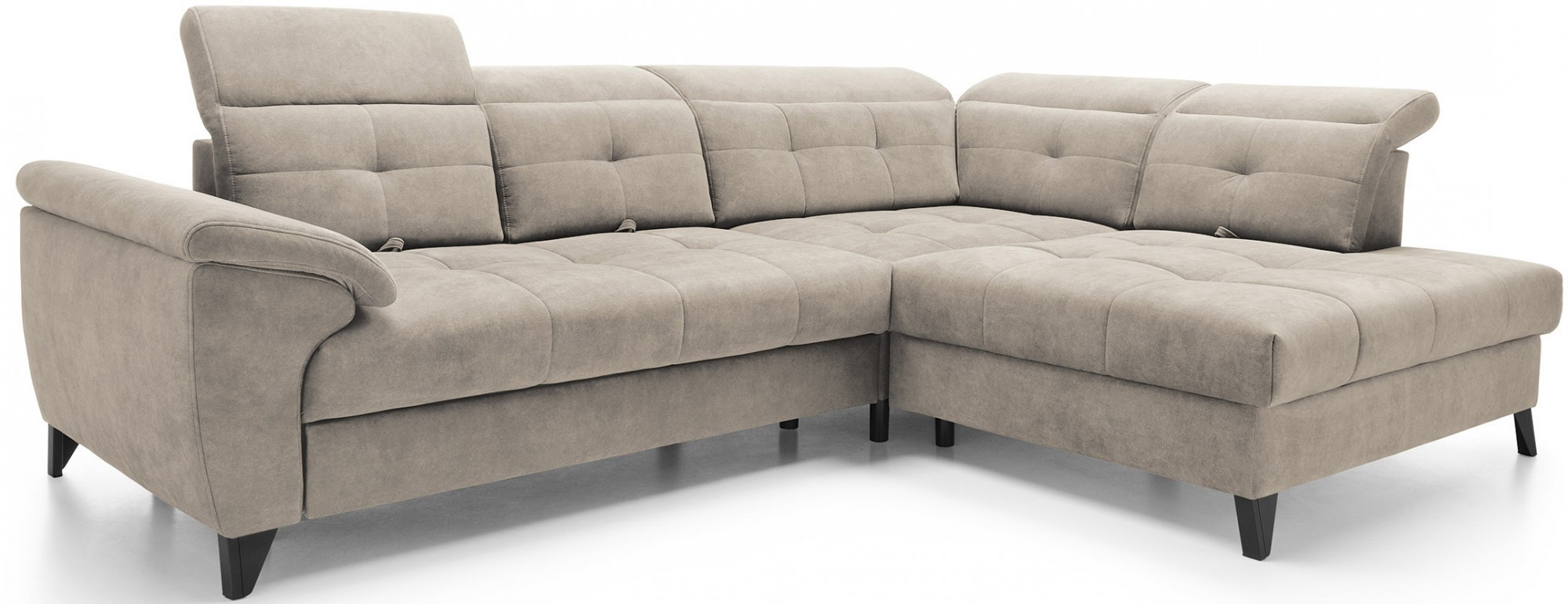 Rohová sedačka Inferne je vytříbený kus nábytku do obývacího pokoje, který kombinuje moderní design s komponenty nejvyšší kvality, poskytující nezapomenutelný uživatelský komfort. Vybaveno pružinami typu B a sedákem vyplněným vysoce elastickou pěnou HR + T2130, tento rohový gauč nabízí měkkost, pružnost a dokonalé přizpůsobení anatomickému tvaru těla, což vede k hluboké relaxaci a uvolnění svalů.Díky použití flexibilních čalounických popruhů a pěny T2130 v opěradle je rohová pohovka Inferne charakterizována odolností a odolností vůči deformacím. Udržuje si svůj původní vzhled po mnoho let, čímž eliminuje problémy s vráskami a ztrátou tvaru. Mechanismus typu Dolphin, snadno použitelný, umožňuje rychlou přeměnu rohové pohovky na pohodlnou postel, ideální jak pro vás, tak pro vaše hosty.Navíc je rohová pohovka Inferne vybavena prostorným úložným prostorem na ložní prádlo, který je diskrétně skrytý uvnitř. Toto vynikající řešení poskytuje praktické místo pro ukládání textilií. Černé kovové nohy dodávají rohové pohovce moderní charakter, čímž zdůrazňují eleganci tohoto kusu nábytku. Precizní provedení dělá z rohové pohovky Inferne nejen pohodlný prvek interiéru, ale také elegantní akcent v uspořádání obývacího pokoje.Rohová sedačka Inferne vytváří harmonii luxusu, pohodlí a funkčnosti ve vašem obývacím pokoji, slouží nejen jako místo pro relaxaci, ale také pro setkání s rodinou a přáteli.
