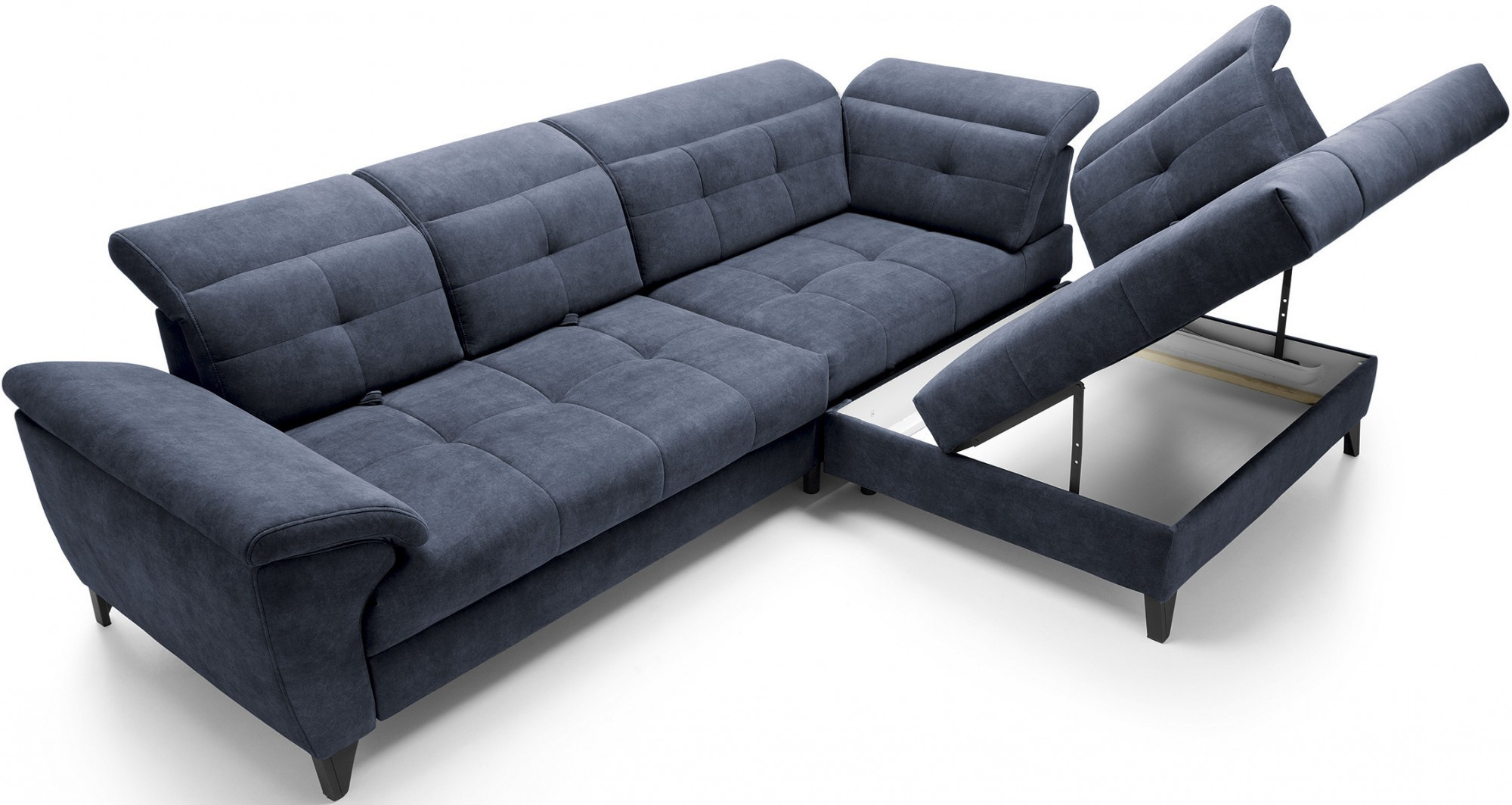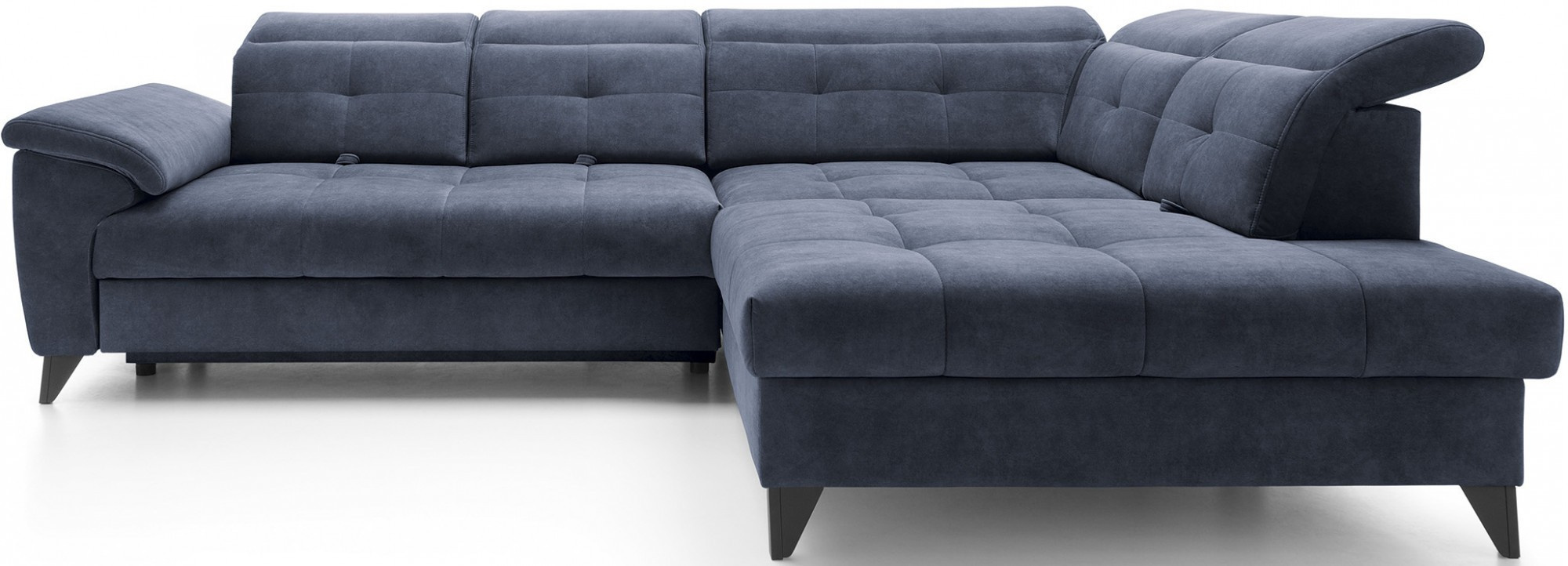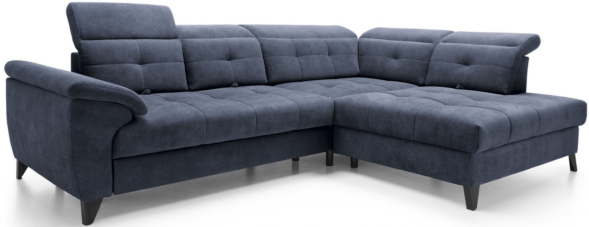 Rohová sedačka Inferne je vytříbený kus nábytku do obývacího pokoje, který kombinuje moderní design s komponenty nejvyšší kvality, poskytující nezapomenutelný uživatelský komfort. Vybaveno pružinami typu B a sedákem vyplněným vysoce elastickou pěnou HR + T2130, tento rohový gauč nabízí měkkost, pružnost a dokonalé přizpůsobení anatomickému tvaru těla, což vede k hluboké relaxaci a uvolnění svalů.Díky použití flexibilních čalounických popruhů a pěny T2130 v opěradle je rohová pohovka Inferne charakterizována odolností a odolností vůči deformacím. Udržuje si svůj původní vzhled po mnoho let, čímž eliminuje problémy s vráskami a ztrátou tvaru. Mechanismus typu Dolphin, snadno použitelný, umožňuje rychlou přeměnu rohové pohovky na pohodlnou postel, ideální jak pro vás, tak pro vaše hosty.Navíc je rohová pohovka Inferne vybavena prostorným úložným prostorem na ložní prádlo, který je diskrétně skrytý uvnitř. Toto vynikající řešení poskytuje praktické místo pro ukládání textilií. Černé kovové nohy dodávají rohové pohovce moderní charakter, čímž zdůrazňují eleganci tohoto kusu nábytku. Precizní provedení dělá z rohové pohovky Inferne nejen pohodlný prvek interiéru, ale také elegantní akcent v uspořádání obývacího pokoje.Rohová sedačka Inferne vytváří harmonii luxusu, pohodlí a funkčnosti ve vašem obývacím pokoji, slouží nejen jako místo pro relaxaci, ale také pro setkání s rodinou a přáteli.