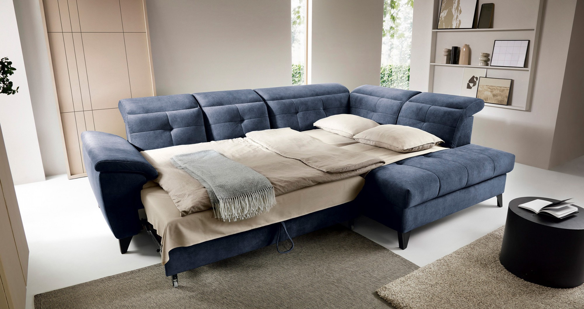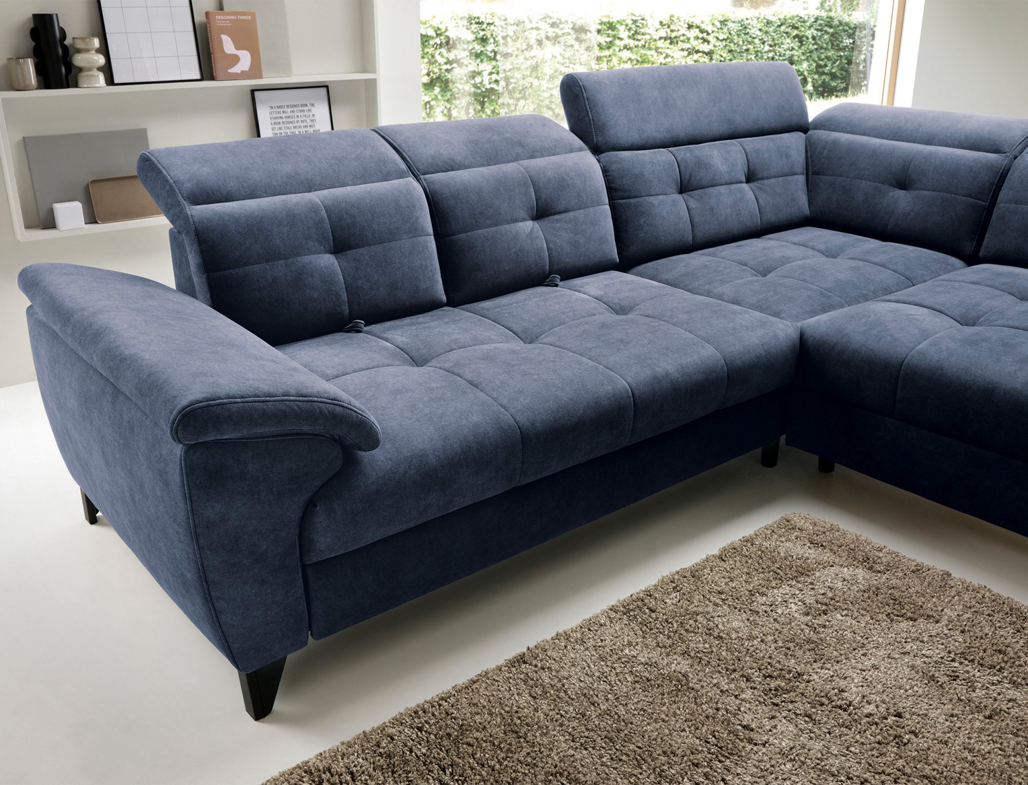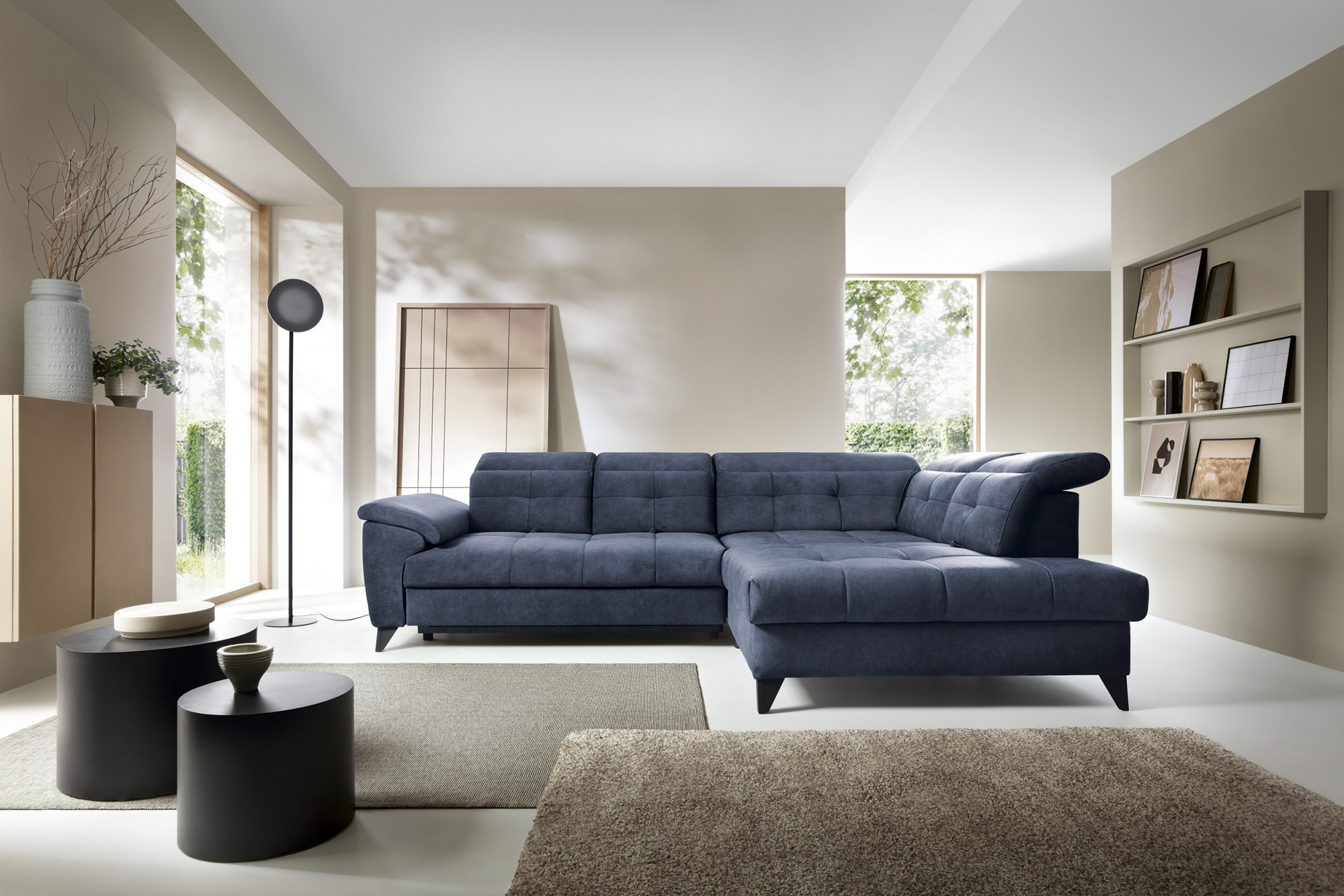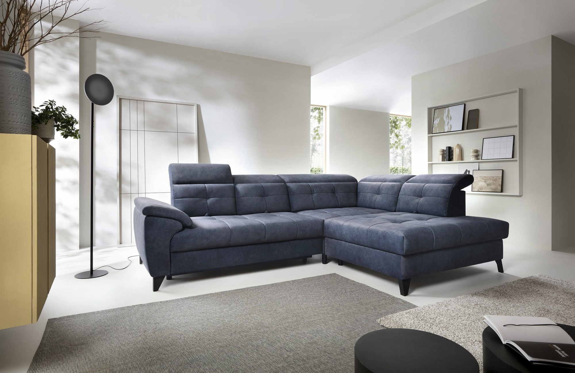 Rohová sedačka Inferne je vytříbený kus nábytku do obývacího pokoje, který kombinuje moderní design s komponenty nejvyšší kvality, poskytující nezapomenutelný uživatelský komfort. Vybaveno pružinami typu B a sedákem vyplněným vysoce elastickou pěnou HR + T2130, tento rohový gauč nabízí měkkost, pružnost a dokonalé přizpůsobení anatomickému tvaru těla, což vede k hluboké relaxaci a uvolnění svalů.Díky použití flexibilních čalounických popruhů a pěny T2130 v opěradle je rohová pohovka Inferne charakterizována odolností a odolností vůči deformacím. Udržuje si svůj původní vzhled po mnoho let, čímž eliminuje problémy s vráskami a ztrátou tvaru. Mechanismus typu Dolphin, snadno použitelný, umožňuje rychlou přeměnu rohové pohovky na pohodlnou postel, ideální jak pro vás, tak pro vaše hosty.Navíc je rohová pohovka Inferne vybavena prostorným úložným prostorem na ložní prádlo, který je diskrétně skrytý uvnitř. Toto vynikající řešení poskytuje praktické místo pro ukládání textilií. Černé kovové nohy dodávají rohové pohovce moderní charakter, čímž zdůrazňují eleganci tohoto kusu nábytku. Precizní provedení dělá z rohové pohovky Inferne nejen pohodlný prvek interiéru, ale také elegantní akcent v uspořádání obývacího pokoje.Rohová sedačka Inferne vytváří harmonii luxusu, pohodlí a funkčnosti ve vašem obývacím pokoji, slouží nejen jako místo pro relaxaci, ale také pro setkání s rodinou a přáteli.