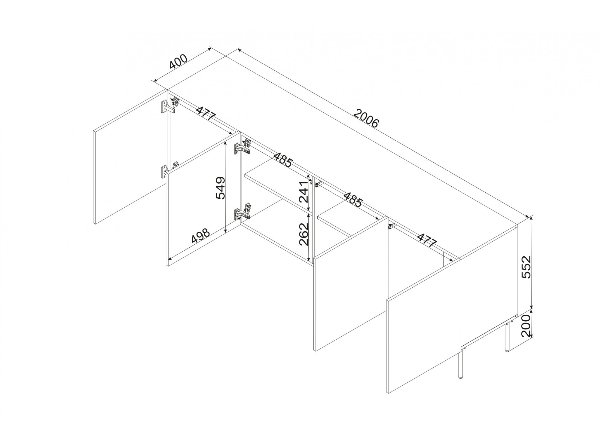 ISLA komoda 200 rozměry: V/Š/H - 75cm/200cm/40cm materiál: korpus: laminovaná deska 16mm čela: MDF deska o tloušťce 16mm s viditelnými frézami Nohy: kovové (černé), výška 20 cm Úchyt: systém PUSH TO OPEN
