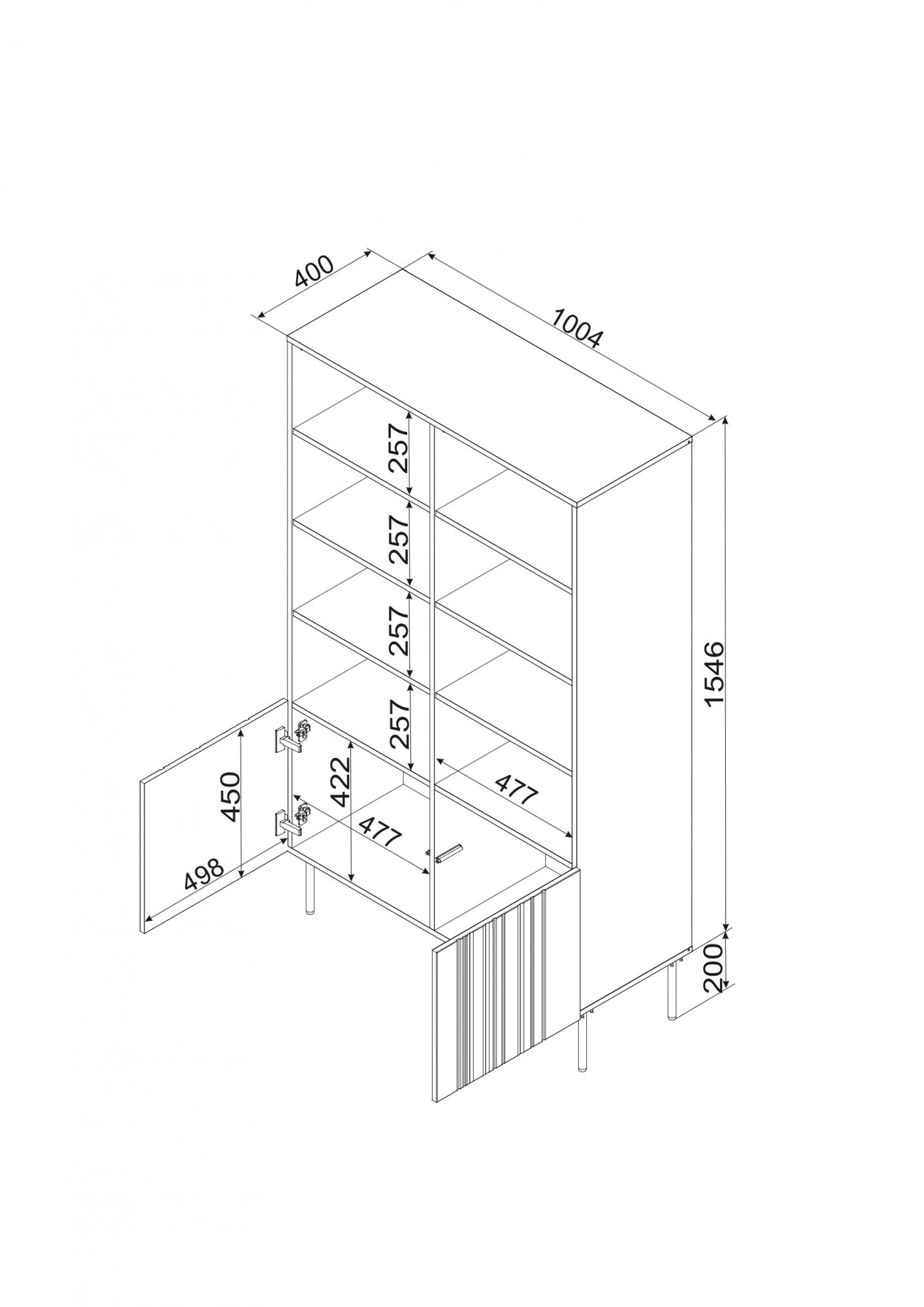 ISLA regál 100 rozměry: V/Š/H - 174,5cm/100cm/40cm materiál: korpus: laminovaná deska 16mm čela: MDF deska o tloušťce 16mm s viditelnými frézami Nohy: kovové (černé), výška 20 cm Úchyt: systém PUSH TO OPEN