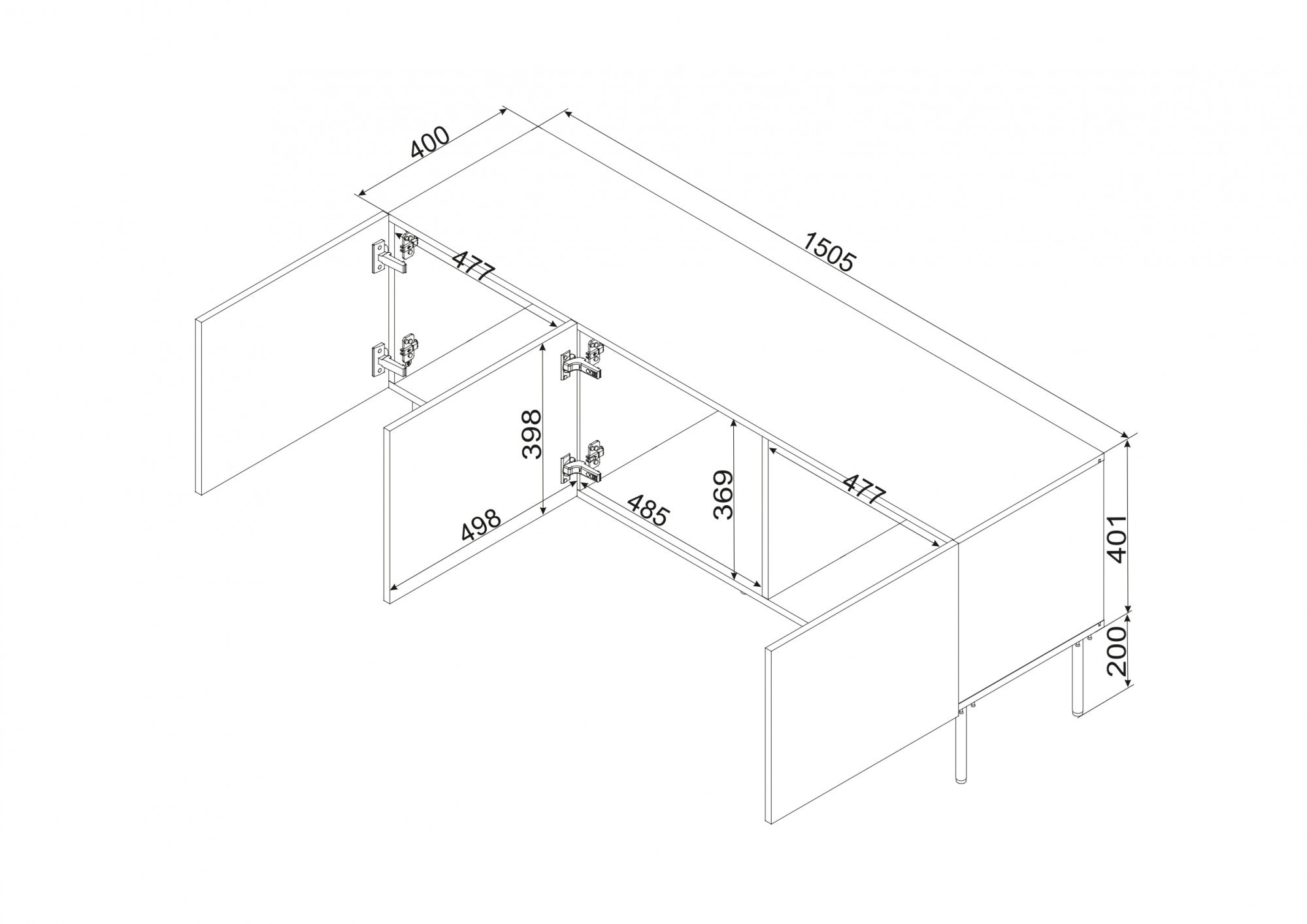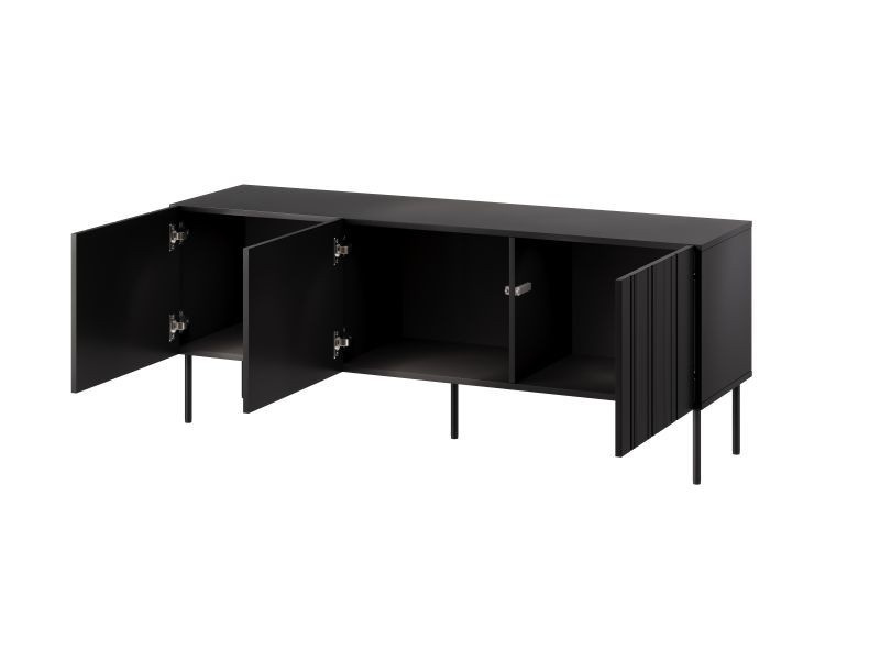 ISLA TV skříňka 150 rozměry: V/Š/H - 60cm/150,5cm/40cm materiál: korpus: laminovaná deska 16mm čela: MDF deska o tloušťce 16mm s viditelnými frézami Nohy: kovové (černé), výška 20 cm Úchyt: systém PUSH TO OPEN