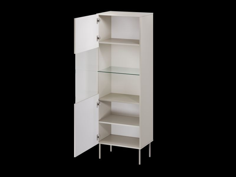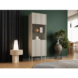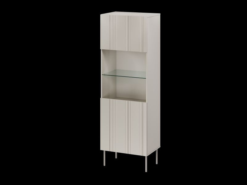 ISLA vitrína 60 rozměry: V/Š/H - 180cm/59,5cm/40cm materiál: korpus: laminovaná deska 16mm čela: MDF deska o tloušťce 16mm s viditelnými frézami Nohy: kovové (béžové), výška 20 cm Úchyt: systém PUSH TO OPEN