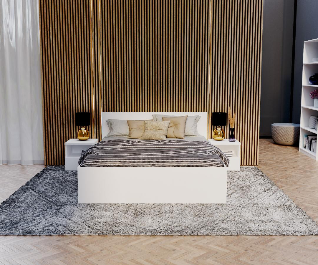 Postel do ložnice PANAMA je odolná a pevně vyrobená v sympatickém designu. Model inspirovaný skandinávským stylem. PANAMA je vyrobena z vysoce kvalitní dřevotřískové desky potažené dekorativním papírem a napuštěné melaminovou pryskyřicí. Tato deska je nejčastěji používaným materiálem pro moderní nábytek. Je k dispozici v různých povrchových úpravách - matné a s texturou dřeva.