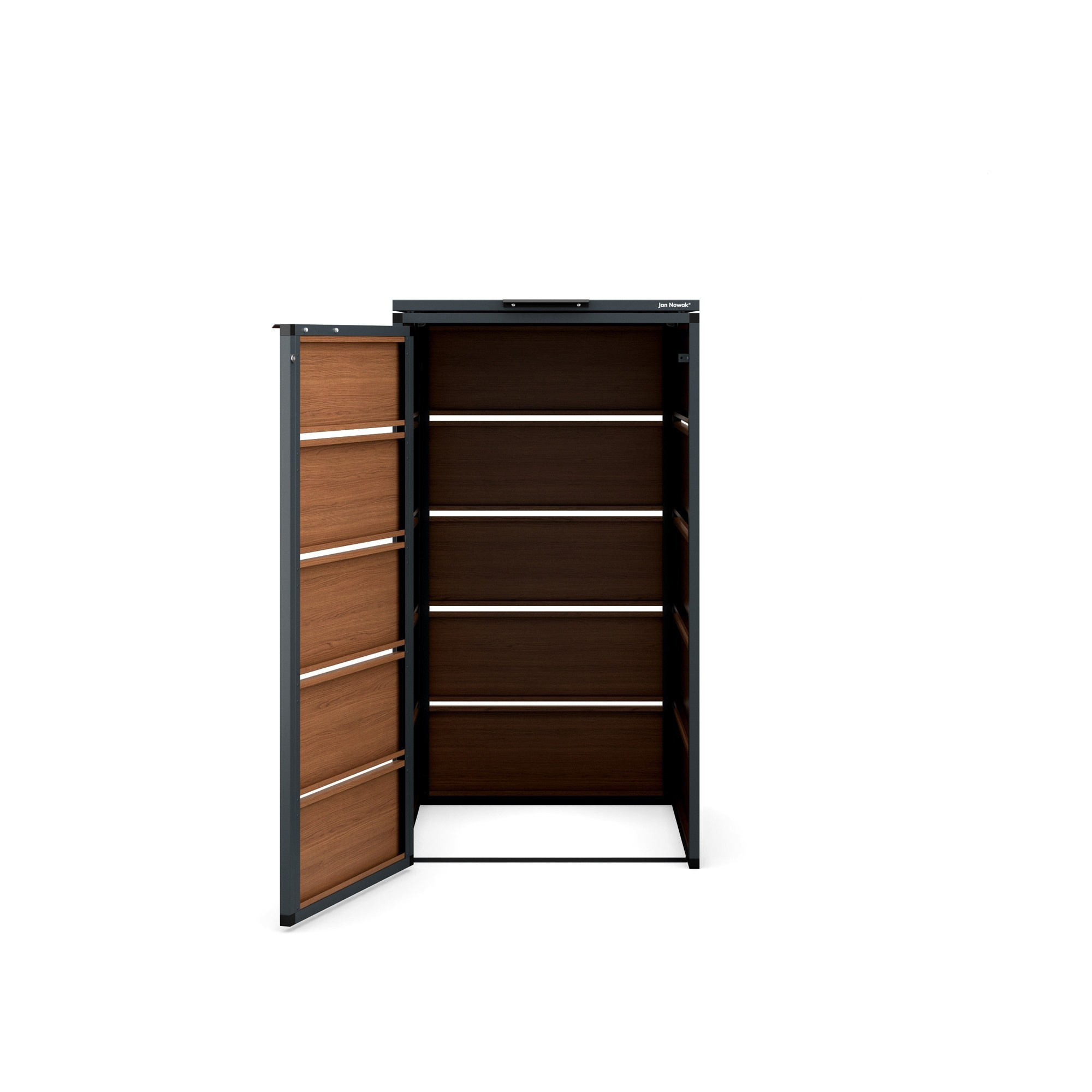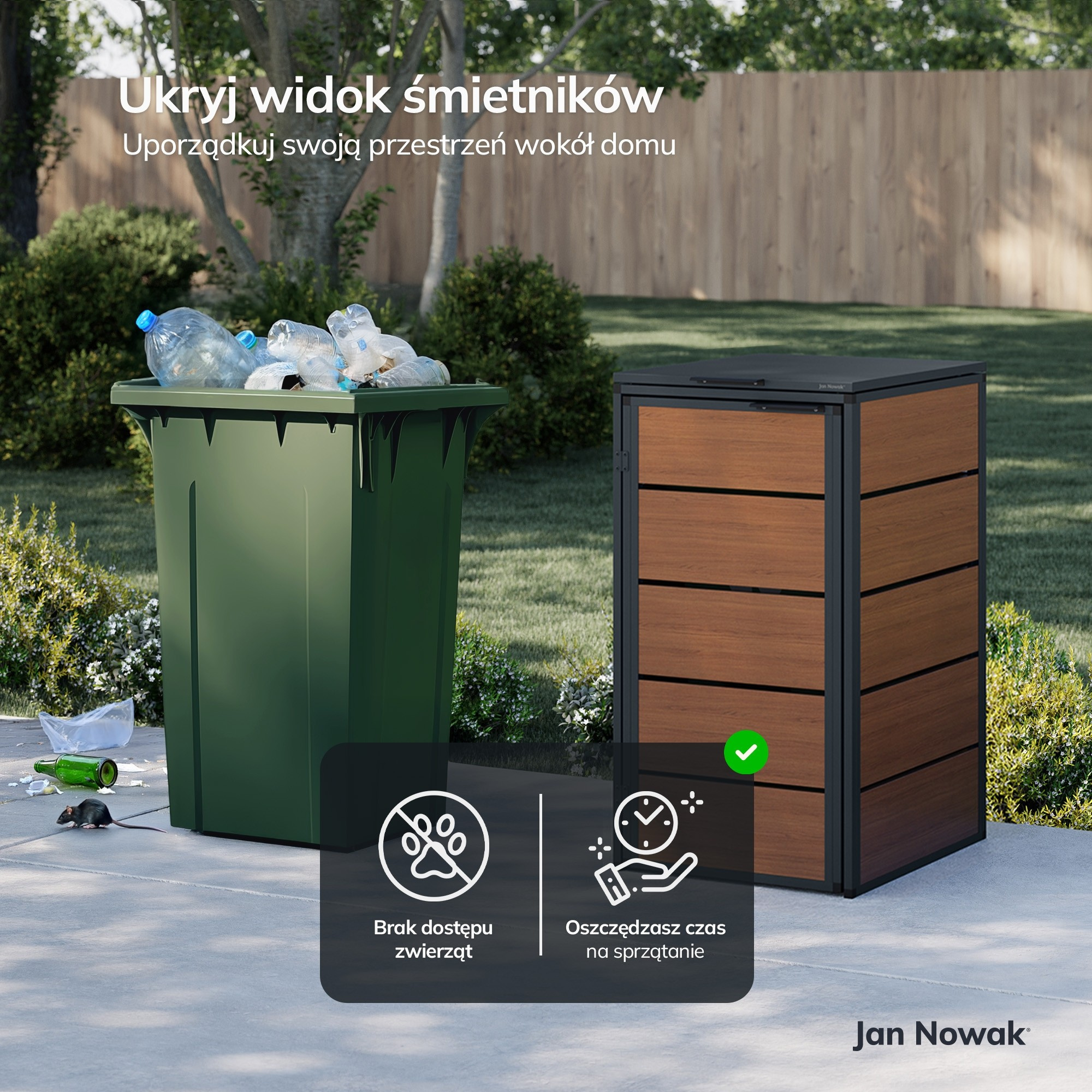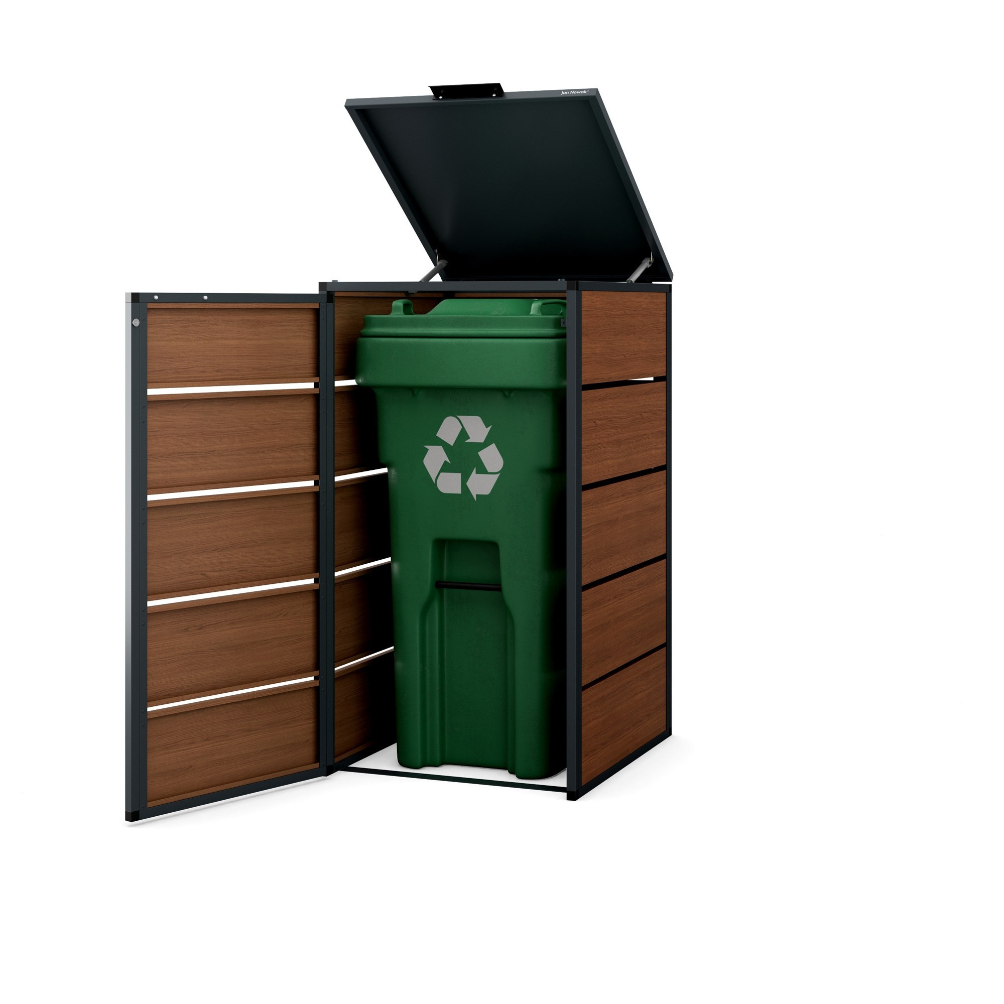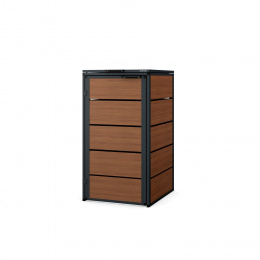 Funkčnost a kompaktnost vestavby jdou ruku v ruce s příjemným vzhledem. Univerzálnost a moderní minimalismus zajišťují, že odpadkový přístřešek se dokonale hodí do jakéhokoli prostoru a bude atraktivním prvkem před domem nebo pracovištěm. Vyberte si z barev antracit a ořech, a slaďte zabudovu s okolím.