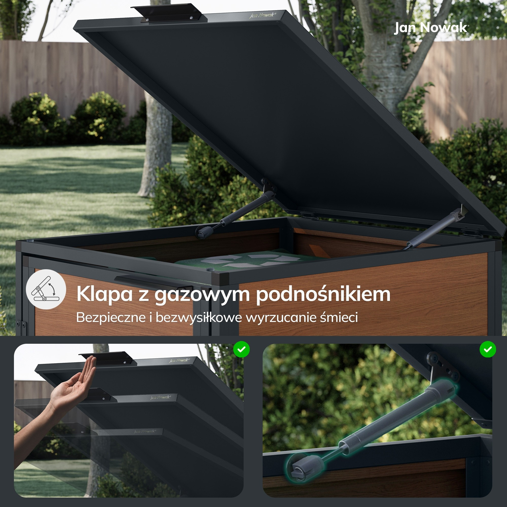 Jednokomorová popelnicová skříň 240L, antracit - ořech