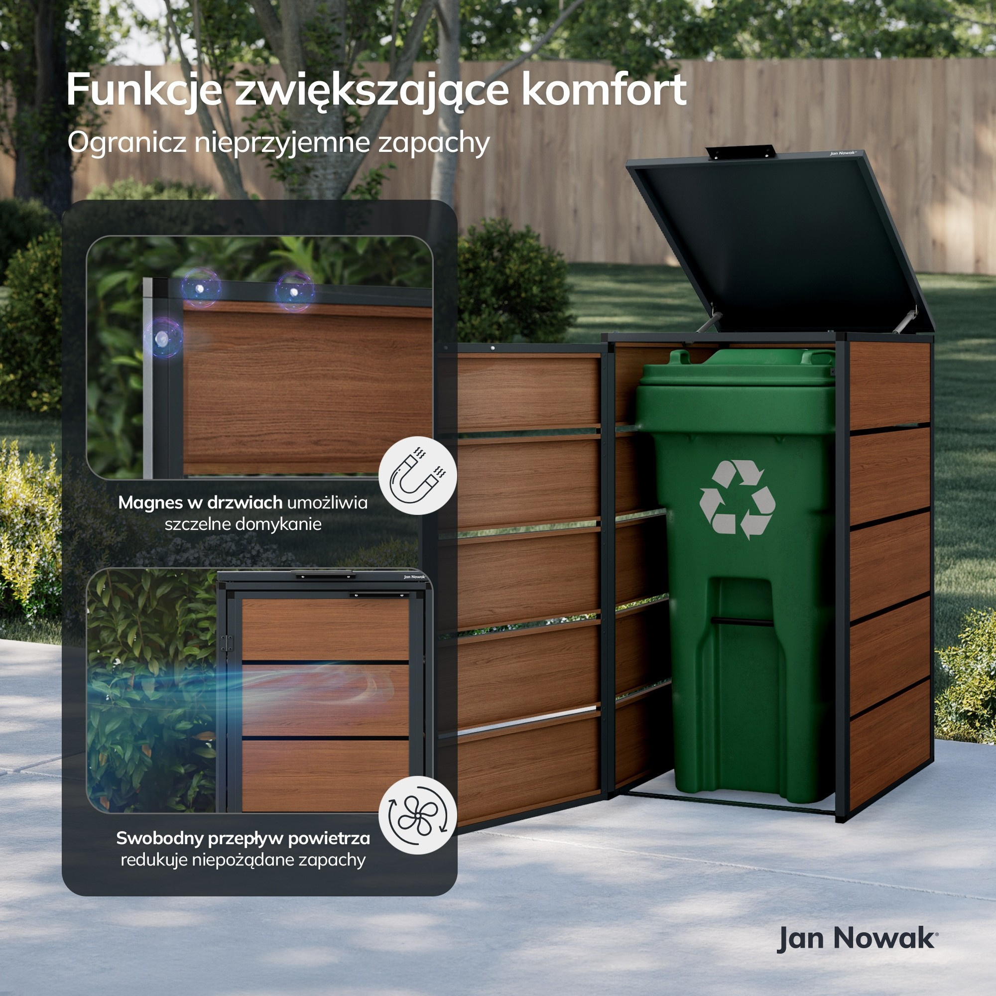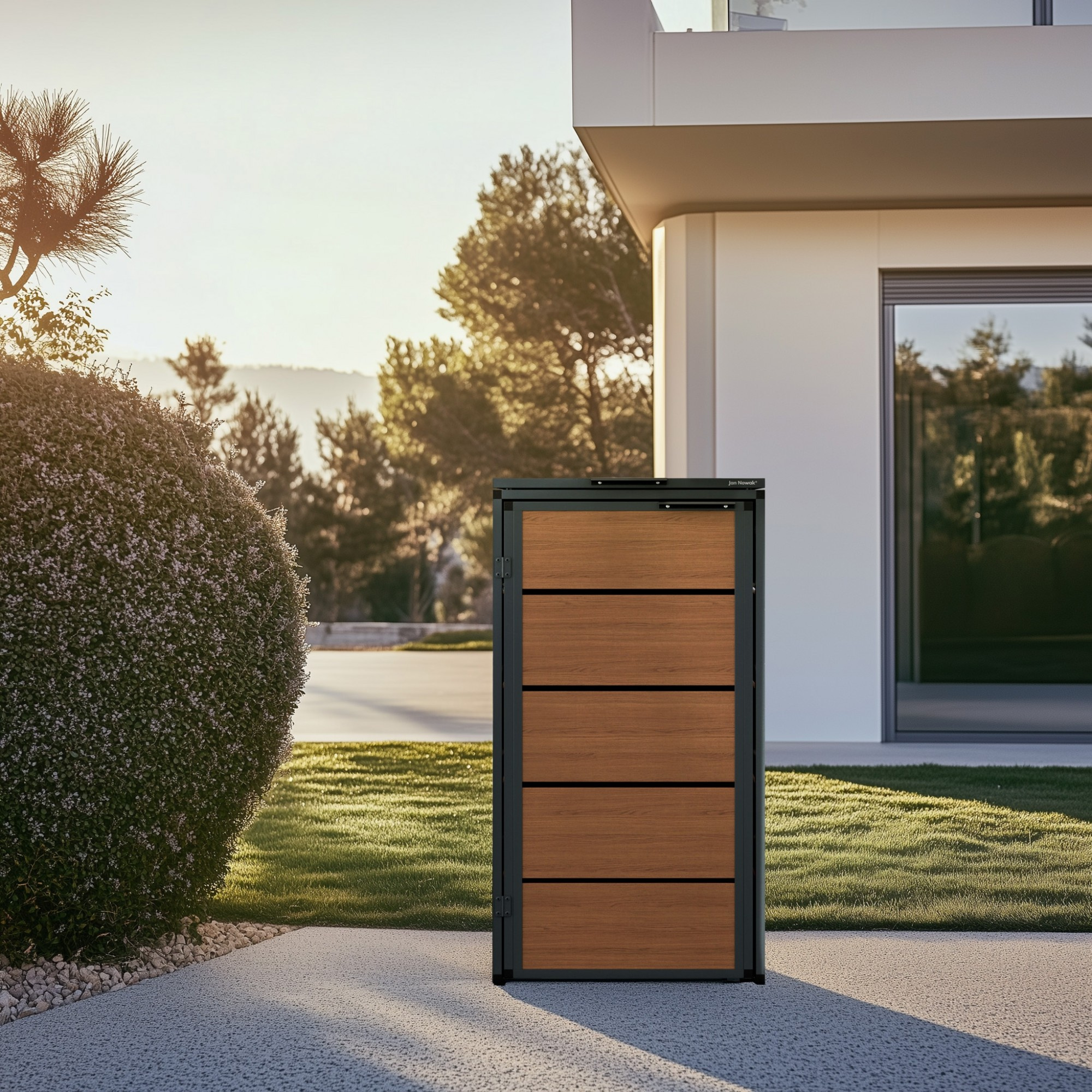 Funkčnost a kompaktnost vestavby jdou ruku v ruce s příjemným vzhledem. Univerzálnost a moderní minimalismus zajišťují, že odpadkový přístřešek se dokonale hodí do jakéhokoli prostoru a bude atraktivním prvkem před domem nebo pracovištěm.