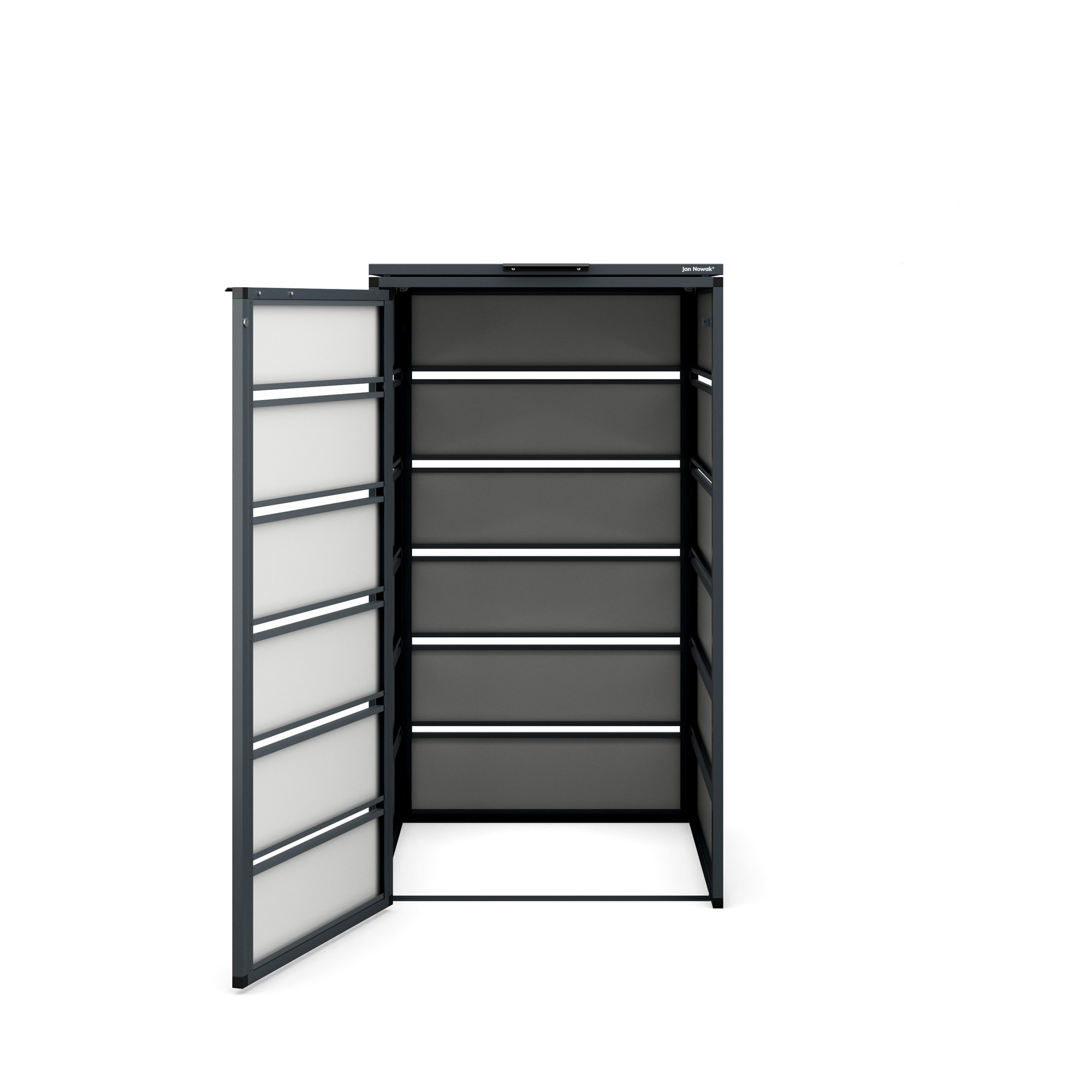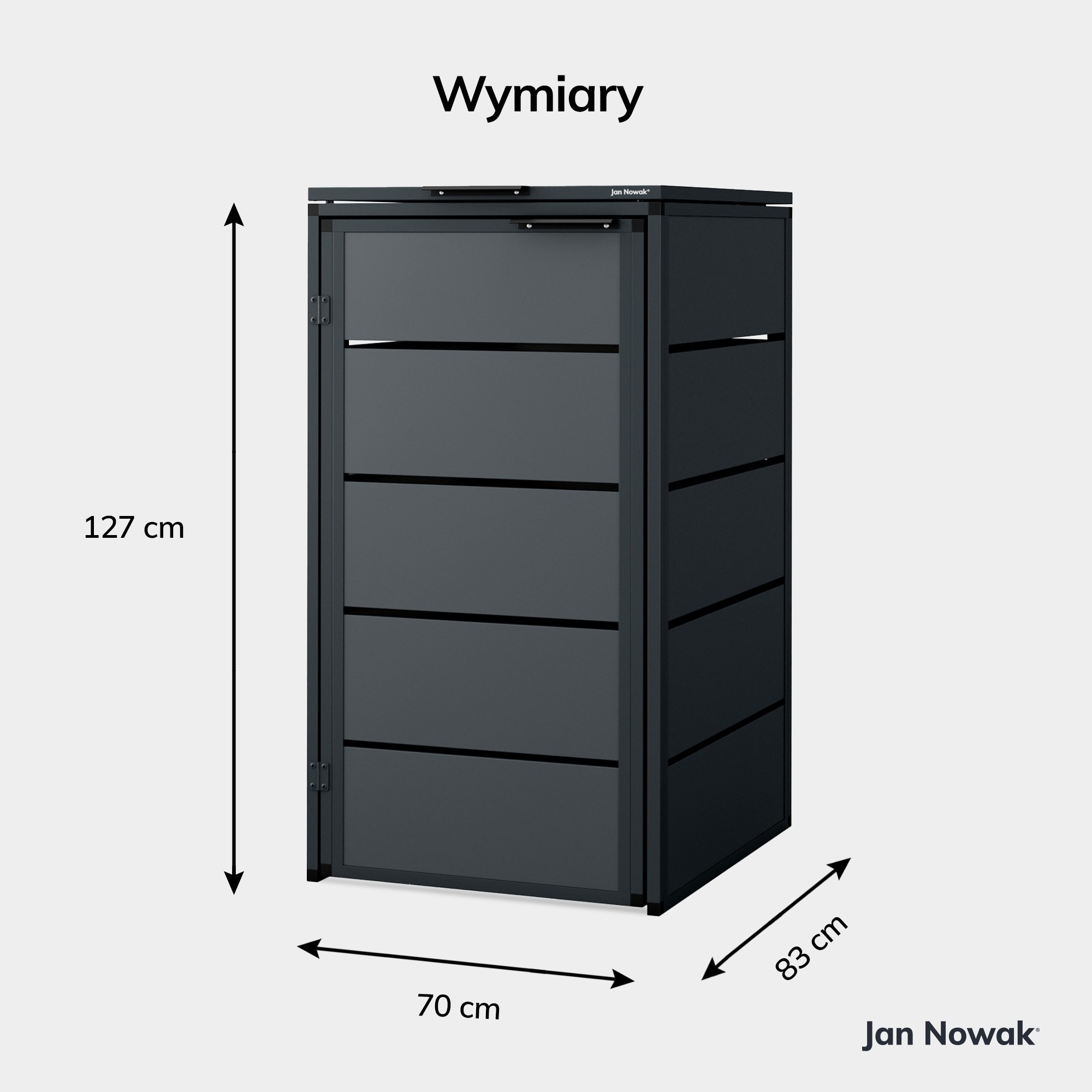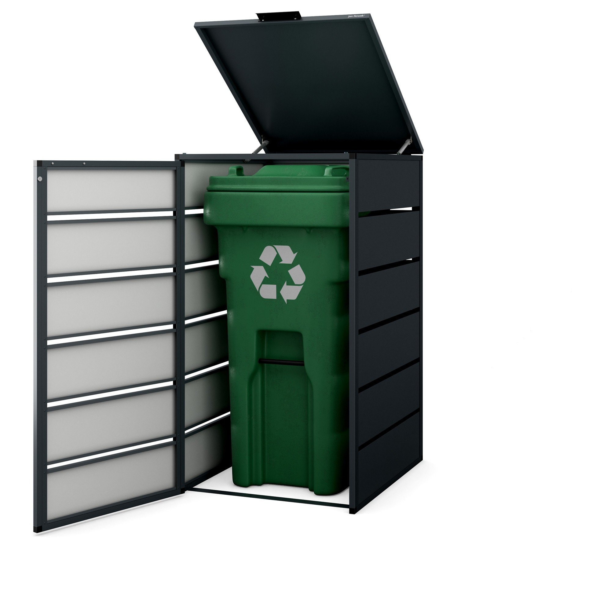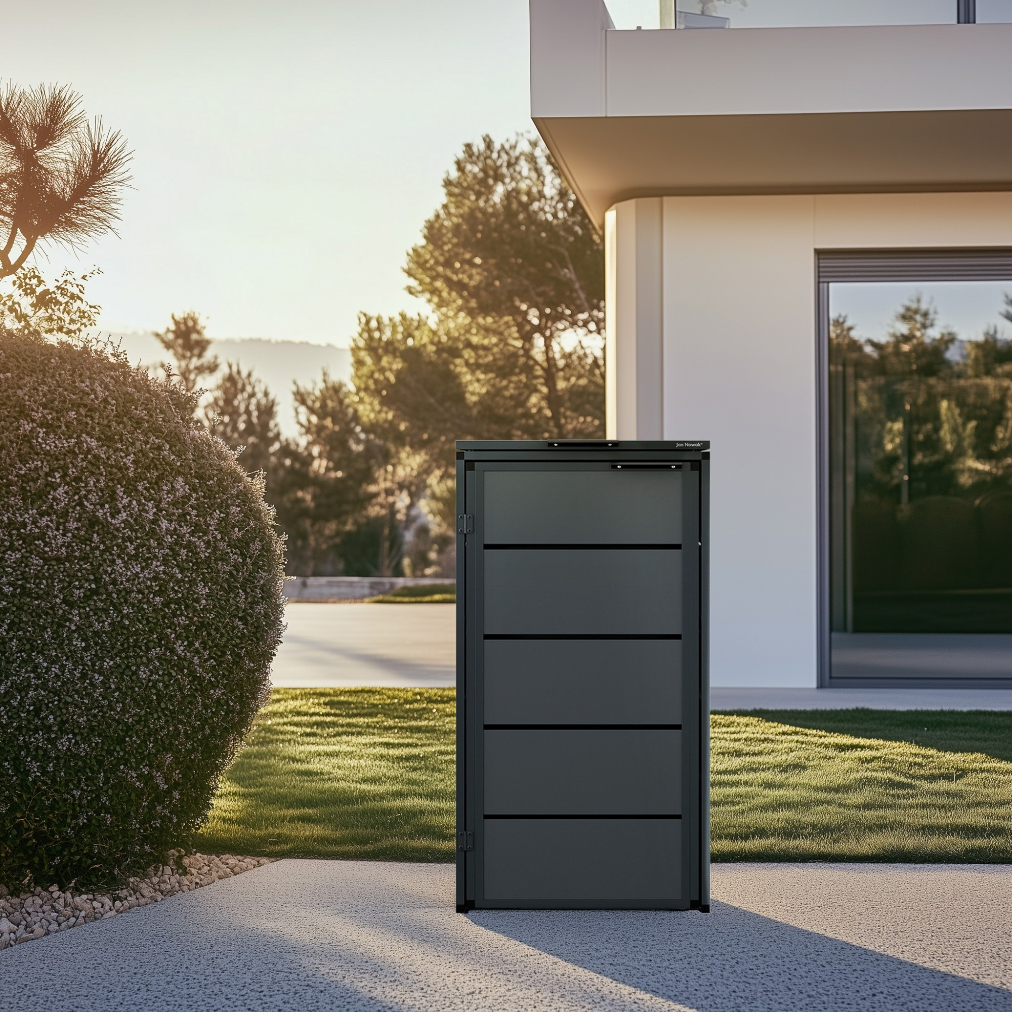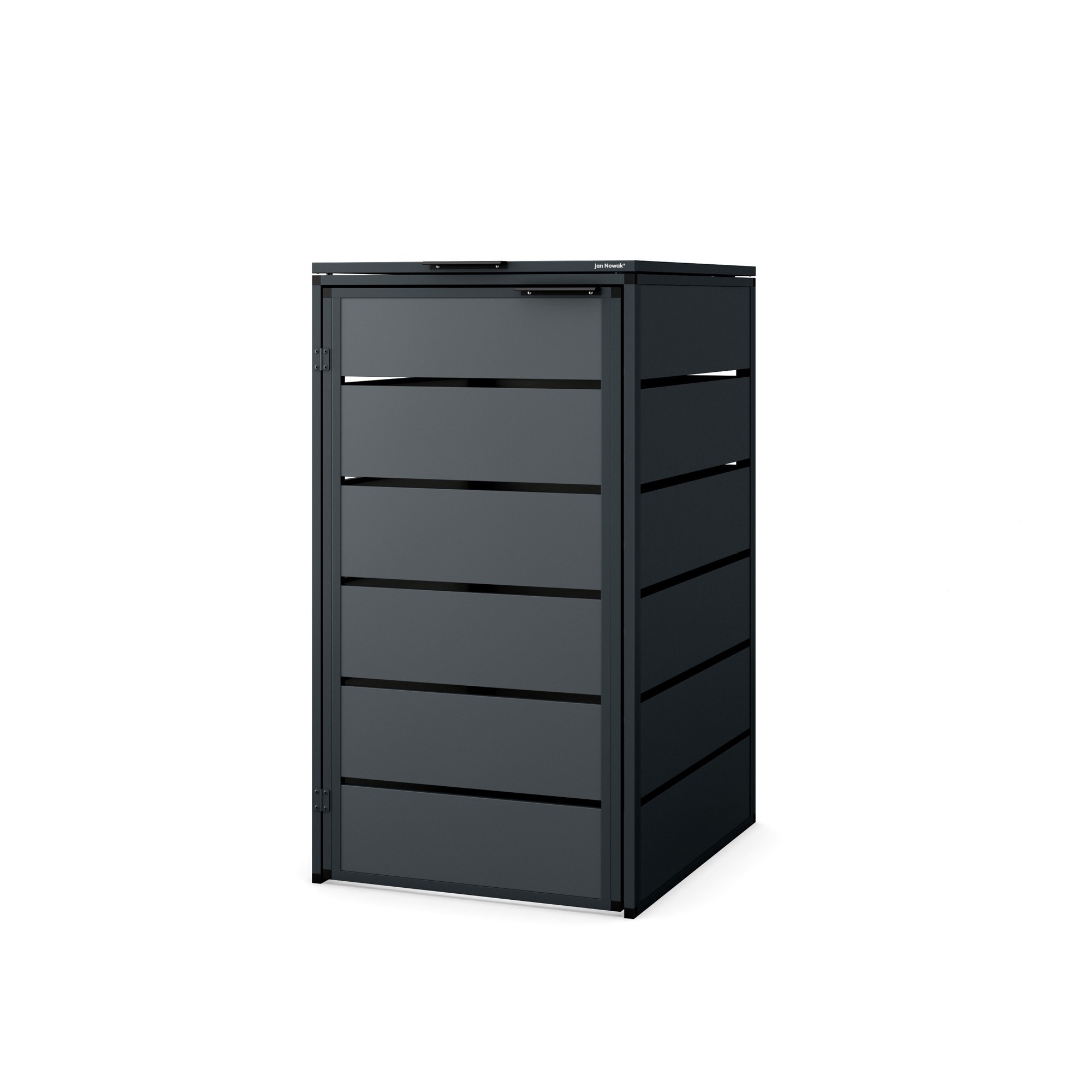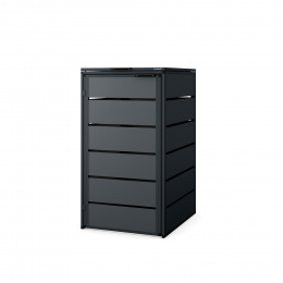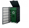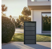 Kontejnerová zabudova se vyznačuje moderním a minimalistickým designem, který se hodí do jakéhokoli prostředí. Její antracitová barva působí elegantně a nenápadně, takže se snadno začlení do vašeho exteriéru.