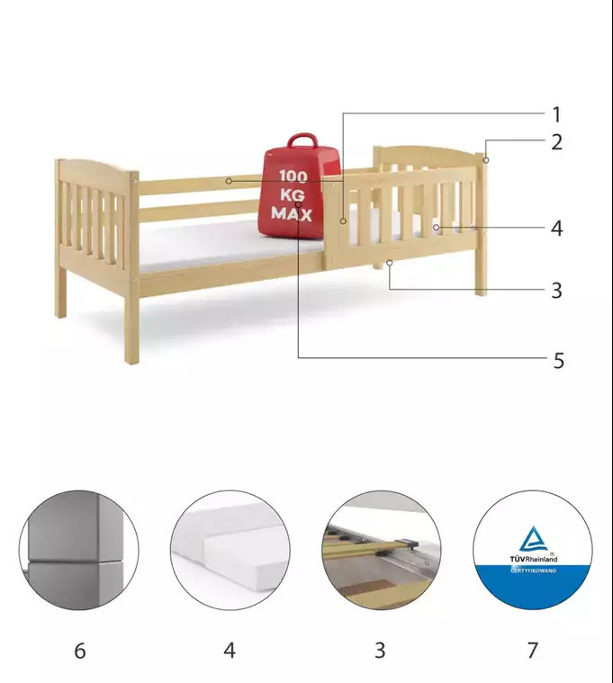 - Rám postele je vyrobený z borovicového dřeva a natřený vodním lakem