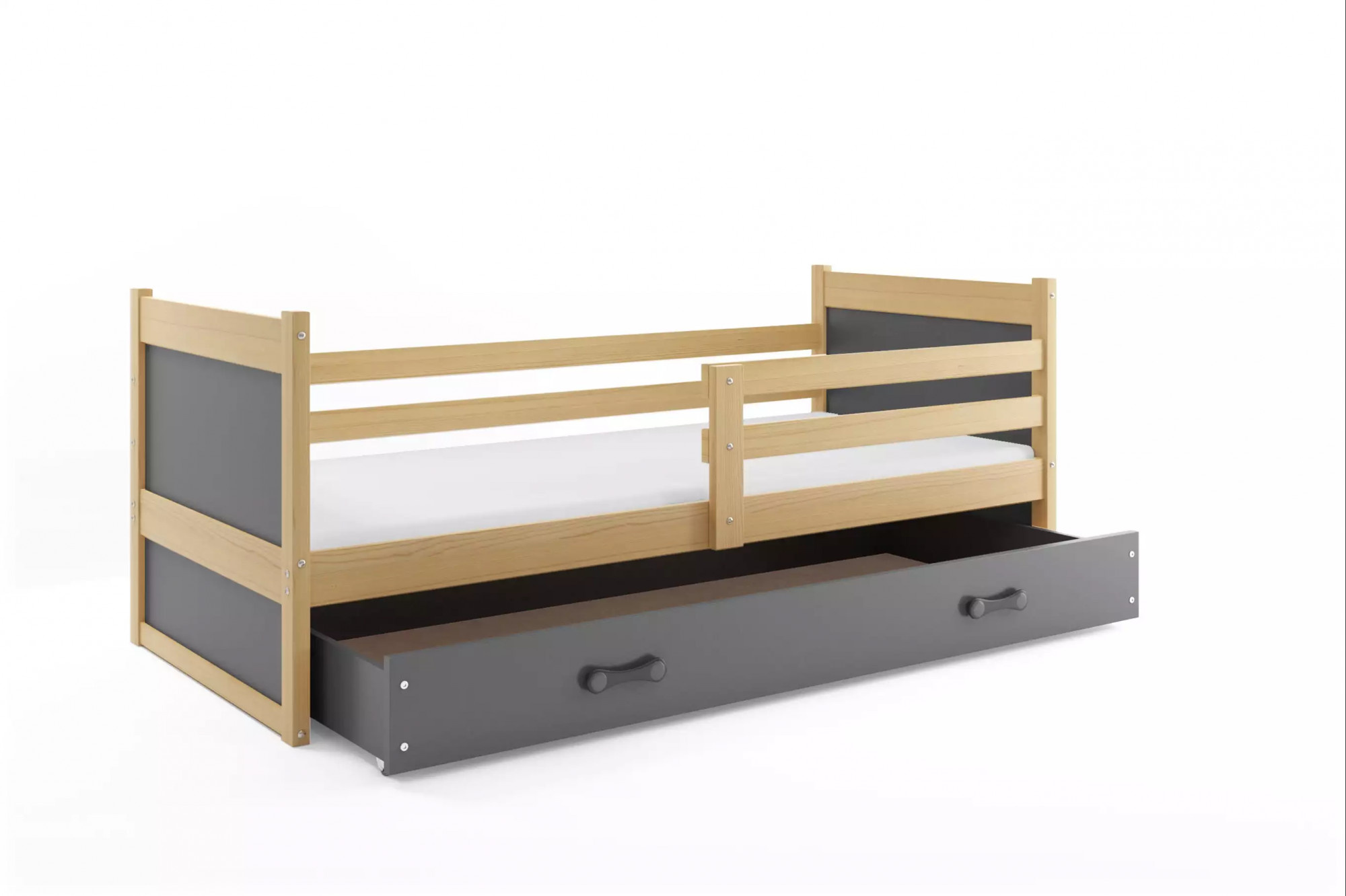 Dětská postel RICO 90x190 cm se šuplíkem, bez matrace, Přírodní/Grafit