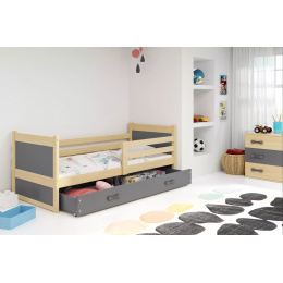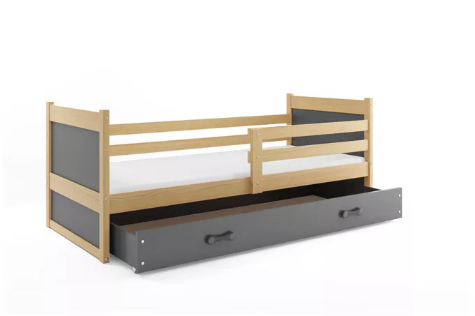 Dětská postel RICO 90x200 cm se šuplíkem, bez matrace, Přírodní/Grafit
