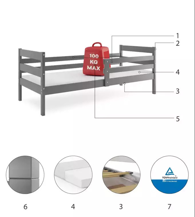 Dětská postel ERYK 80x190 cm, bez matrace, Grafit