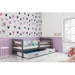 Dětská postel ERYK 90x200 cm se šuplíkem, bez matrace, Grafit/Bílá