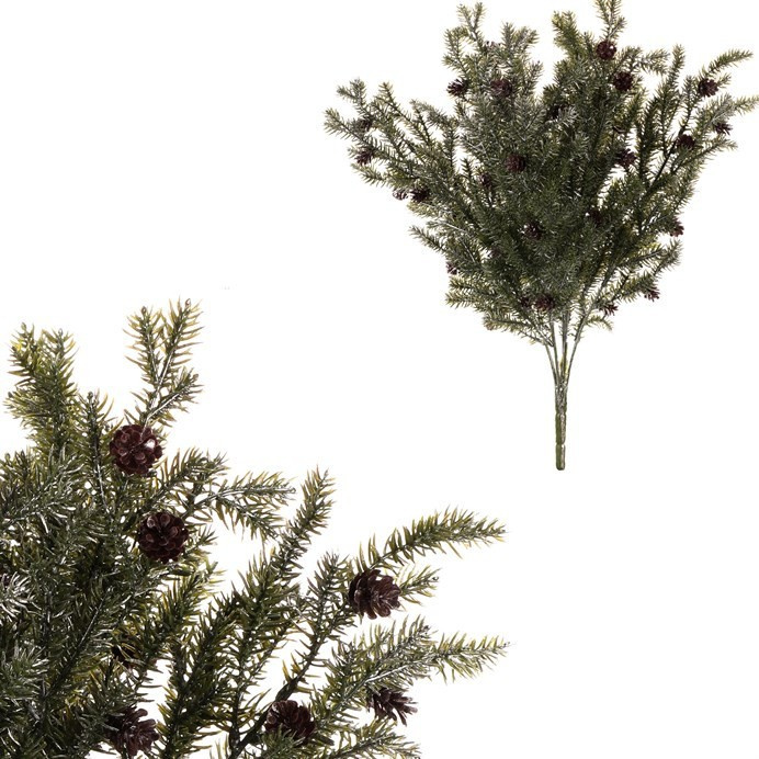 Jehličí - umělá větev se šiškami, zelená, postříbřená