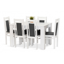 Jídelní sestava Akord 6 se skládá ze stolu a šesti židlí. Tato jídelní sestava splní svůj účel na výbornou nejen v kuchyni, ale i v jídelně, nebo obývacím pokoji s jídelním koutem. Svou vysokou kvalitou a precizním zpracováním, uspokojí všechny budoucí, i ty velmi náročné, uživatele. Stůl je vyrobený z bílého matného lamina tl.22 mm, kostry židlí z bukového dřeva, barveného na bílou barvu. Jídelní sestava je dodávaná v demontu. Součástí balení je schématický montážní návod, včetně všech potřebných spojovacích prvků. Cena je uvedena za jídelní stůl a 6 židlí. Vlivem nastavení monitorů, nebo displejů telefonů, se zobrazení barev na fotograii může od skutečnosti lišit. Úvodní fotografie je ilustrační. Židle budou dodané v zelené barvě.