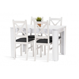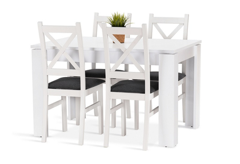 Jídelní sestava Iris 4 se skládá ze stolu a čtyř židlí. Tato jídelní sestava svou vysokou kvalitou a precizním zpracováním uspokojí všechny budoucí uživatele. Stůl je vyrobený z bílého matného lamina tl.22 mm, kostry židlí z bukového dřeva, barveného na bílou barvu. Jídelní sestava je dodávaná v demontu. Součástí balení je schématický montážní návod, včetně všech potřebných spojovacích prvků. Cena je uvedena za jídelní stůl a 4 židle. Vlivem nastavení monitorů, nebo displejů telefonů, se zobrazení barev na fotograii může od skutečnosti lišit.