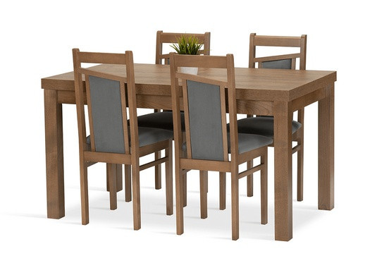 Jídelní sestava Magnum 4 se skládá z rozkládacího stolu a čtyř židlí. Tato jídelní sestava splní svůj účel na výbornou nejen v kuchyni, ale i v jídelně, nebo obývacím pokoji s jídelním koutem. Svou vysokou kvalitou a precizním zpracováním, uspokojí všechny budoucí, i ty velmi náročné, uživatele. Nohy stolu a kostry židlí jsou vyrobeny z bukového dřeva, mořeného tak, aby ladily s deskou stolu, která je vyrobená z lamina v dekoru dub lefkas. Jídelní sestava je dodávaná v demontu. Součástí balení je schématický montážní návod, včetně všech potřebných spojovacích prvků. Cena je uvedena za jídelní stůl a 4 židle. Vlivem nastavení monitorů, nebo displejů telefonů, se zobrazení barev na fotograii může od skutečnosti lišit.