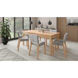 Sada RODOS 80 se ideálně hodí do vaší jídelny. Sada obsahuje stůl s obdélníkovou deskou a šest čalouněných židlí. Stůl můžeš rozložit pomocí vložky, která prodlouží desku až na 180 cm. Stylové židle se vyznačují stabilními nohami vyrobenými z bukového dřeva a čalouněným sedákem a opěradlem s libovolnou potahovou látkou na výběr z ukázaných v galerii. Díky široké škále barev se sada hodí do každého interiéru a doplní váš obývací pokoj, kuchyň nebo jídelnu...