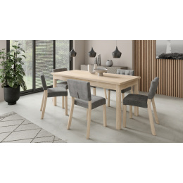 Sada RODOS 80 se ideálně hodí do vaší jídelny. Sada obsahuje stůl s obdélníkovou deskou a šest čalouněných židlí. Stůl můžeš rozložit pomocí vložky, která prodlouží desku až na 180 cm. Stylové židle se vyznačují stabilními nohami vyrobenými z bukového dřeva a čalouněným sedákem a opěradlem s libovolnou potahovou látkou na výběr z ukázaných v galerii. Díky široké škále barev se sada hodí do každého interiéru a doplní váš obývací pokoj, kuchyň nebo jídelnu...