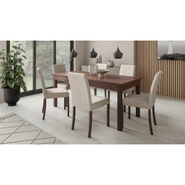 Sada RODOS 81 se ideálně hodí do vaší jídelny. Sada obsahuje stůl s obdélníkovou deskou a šest čalouněných židlí. Stůl můžeš rozložit pomocí vložky, která prodlouží desku až na 180 cm. Stylové židle se vyznačují stabilními nohami vyrobenými z bukového dřeva a čalouněným sedákem a opěradlem s libovolnou potahovou látkou na výběr z ukázaných v galerii. Díky široké škále barev se sada hodí do každého interiéru a doplní váš obývací pokoj, kuchyň nebo jídelnu...