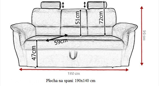 rozměry pohovky: v.96 cm, hl.90 cm, d.190 cm