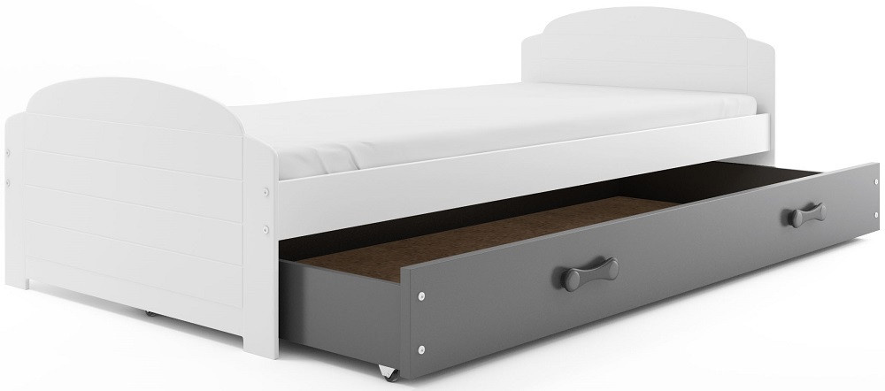 Postel Lizzie je vyrobena z borovicového dřeva, které je barveno a lakováno vodou ředitelným lakem, který je vhodný na dětský nábytek a vyhovuje normám o nezávadnosti. Panely Na bocích postele jsou vyrobeny z kvalitní MDF desky. Součástí postele je praktický úložný prostor na kolečkách, který můžete využít např. na lůžkoviny, rošt a pěnová matrace s doporučenou nosností do 70 kg. Tloušťka matrace je 7cm. Plocha pro spaní je 90x200 cm. Postel je dodávána v demontu a součástí je montážní plánek včetně všech potřebných spojovacích materiálů. Postel nabízíme ve dvou barevných provedeních a také s přistýlkou. Vyobrazené doplňky a dekorace nejsou v ceně.