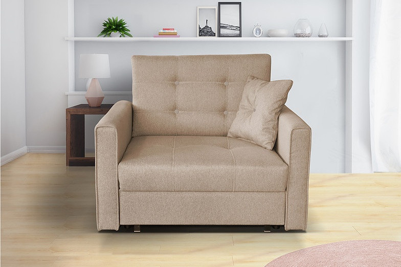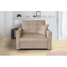 Rozkládací křeslo Vivian Lux I je vhodné do dětského, studentského, nebo hostinského pokoje. Jednoduchým rozložením pomocí automatu, získáte lůžko k příležitostnému přespání Vaší návštěvy, nebo kamaráda dětí. Křeslo je potaženo elegantní látkou v béžové barvě a má i malý úložný prostor na deku a polštář. V ceně křesla je 1 dekorační polštář. Ostatní vyobrazené dekorace nejsou v ceně.