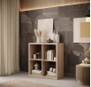 Regál Cleo III je moderní nábytek, který spojuje styl a funkčnost. Díky elegantní barevné kombinaci, která spojuje klasickou bílou s přírodním odstínem dubu sonoma, se regál dokonale hodí do jakéhokoli prostoru – od obývacího pokoje a ložnice, po kancelář či dětský pokoj. Čtvercový design a čtyři symetrické police vytvářejí harmonické uspořádání, které je nejen praktické, ale také dekorativní. Ideálně se hodí k ukládání knih, dokumentů, organizačních krabic nebo k vystavování dekorací a rostlin. Kompaktní rozměry regálu zajišťují, že se hodí jak do větších, tak i menších interiérů, aniž by prostor zahlcoval. Vyrobený z odolných materiálů, Cleo III se vyznačuje pevností a odolností vůči každodennímu používání. Jednoduchá forma a univerzální styl činí z tohoto produktu ideální volbu pro osoby, které si cení estetiky a praktičnosti. Vsaďte na pořádek a design s regálem Cleo III!