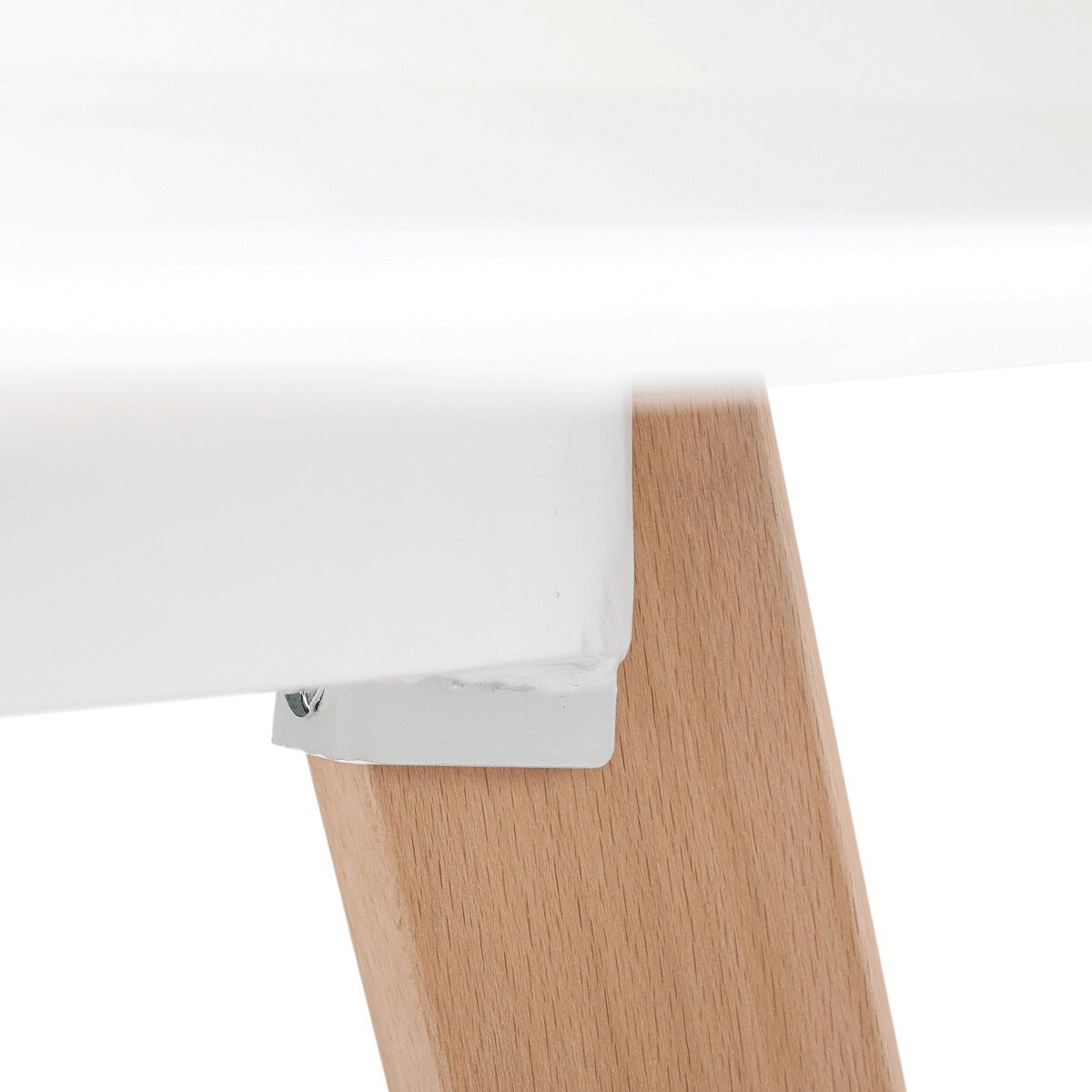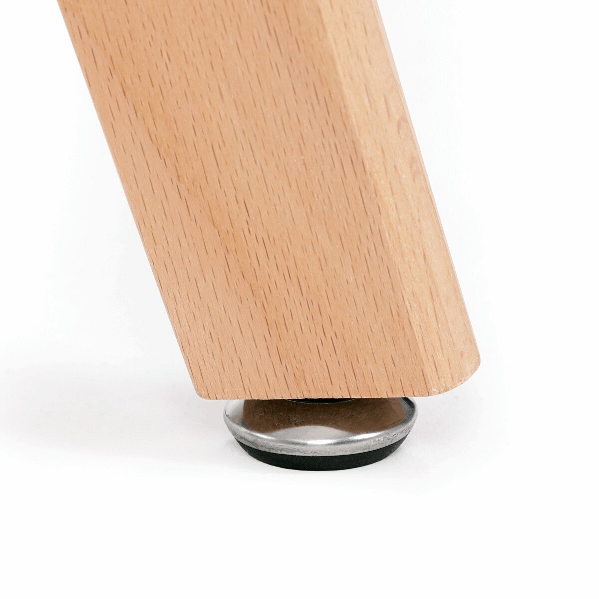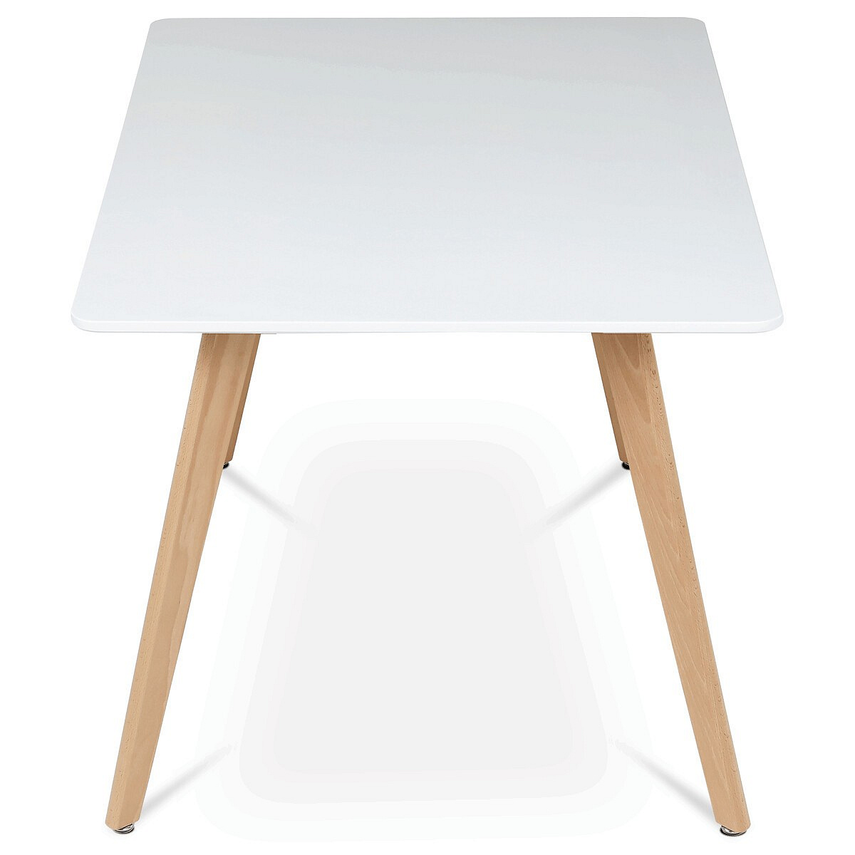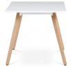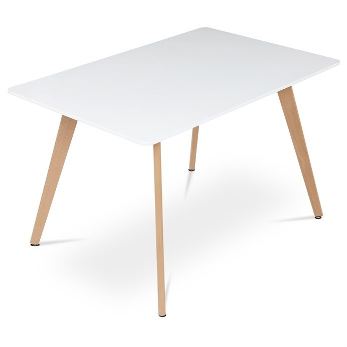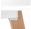 Jídelní stůl o rozměrech 120x80x74 cm kombinuje pevnou desku z MDF s matnou bílou povrchovou úpravou a nohy z masivního buku, které dodávají stabilitu a přírodní vzhled. Deska stolu je navržena s jemně zaoblenými rohy pro bezpečnost a pohodlí při používání. Masivní bukové nohy jsou vybaveny rektifikačními patkami, které umožňují vyrovnání nerovností podlahy a zajišťují stabilitu stolu. Matný lak na desce usnadňuje údržbu a odolává běžnému opotřebení. Stůl je pevný a vhodný pro každodenní použití v jídelnách i kuchyních.