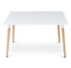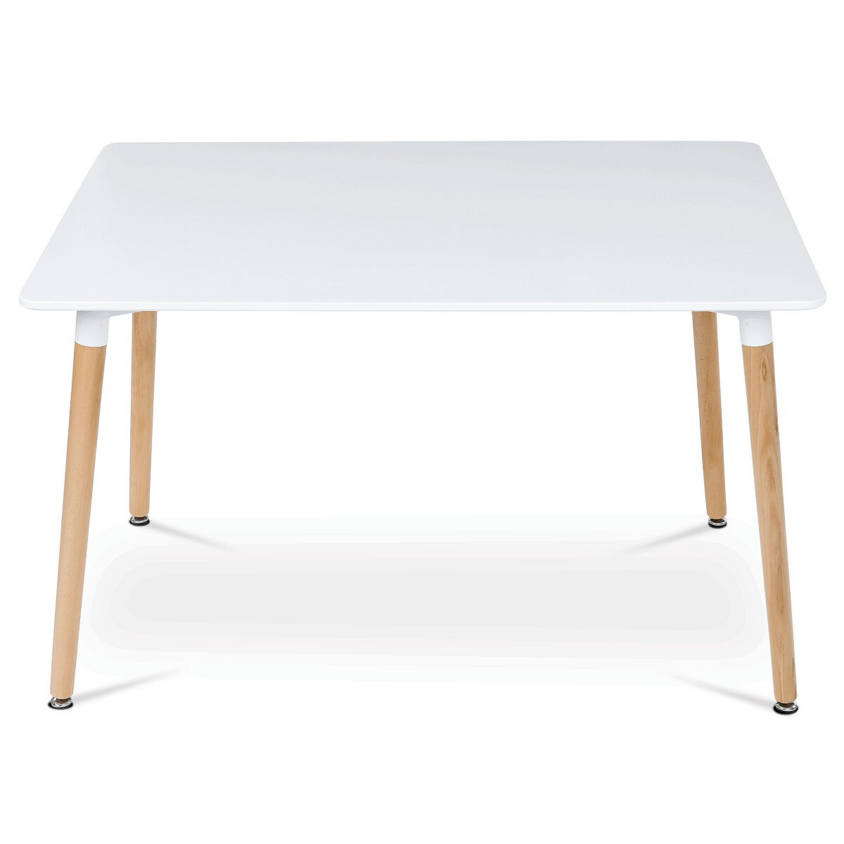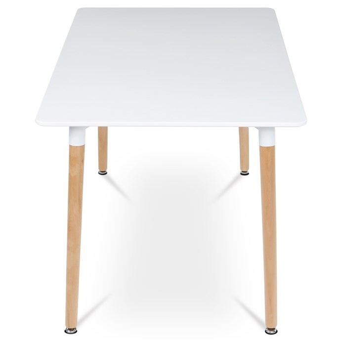 Jídelní stůl zaujme nadčasovým designem v duchu skandinávského stylu a elegantní kombinací bílé matné desky s nohami z masivního bukového dřeva. Obdélníková deska z MDF se zaoblenými rohy působí lehce a zároveň je praktická na údržbu, což oceníte při každodenním stolování. Přírodní dřevěná podnož dodává interiéru teplo a stabilitu, rektifikační nožky zajistí pevné usazení i na nerovném povrchu. Tento kvalitní produkt značky Autronic je ideální volbou do moderní jídelny, kuchyně i komerčních prostor.