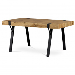 Jídelní stůl 160x90x75 cm, MDF deska tl. 10 cm, dekor divoký dub, kov černý lak