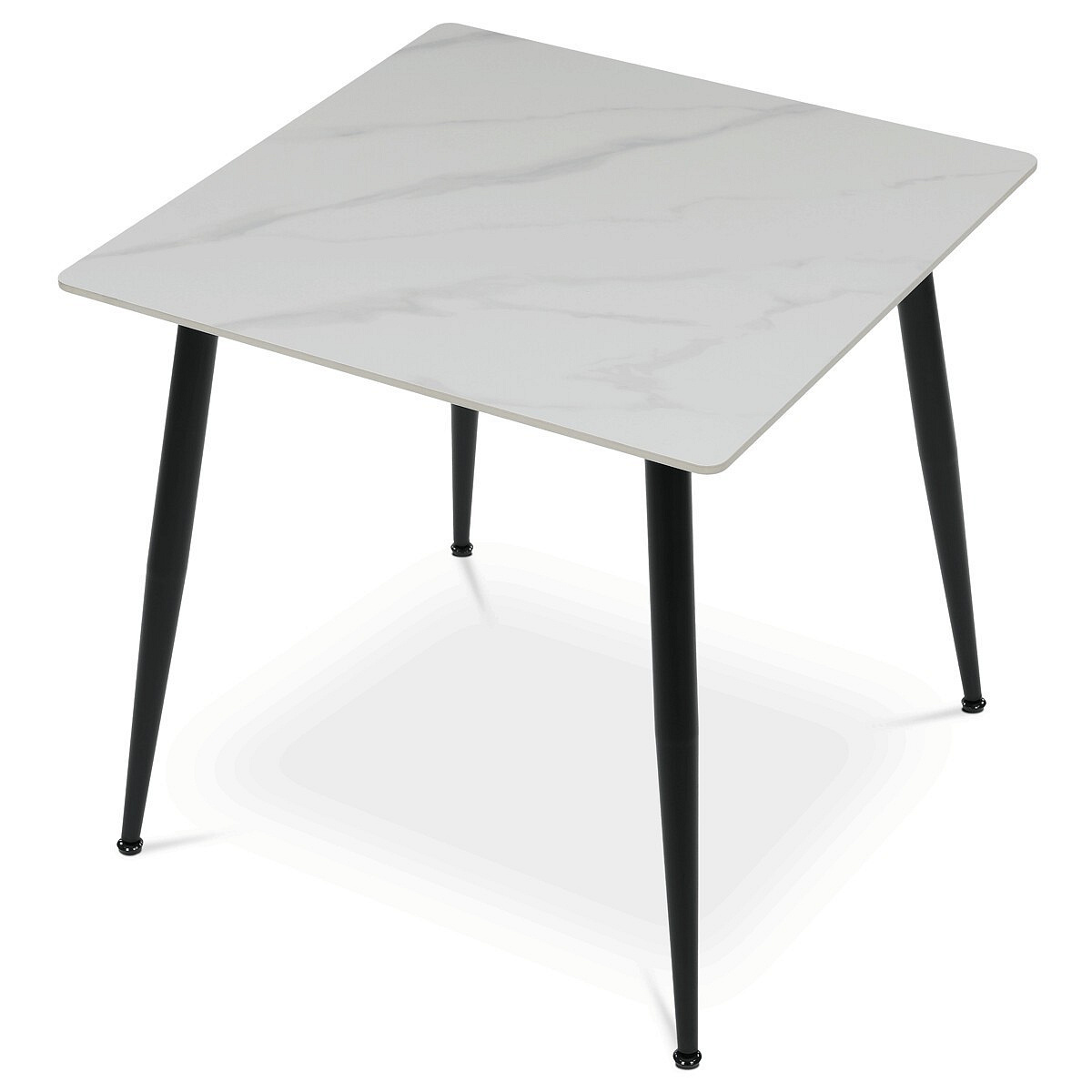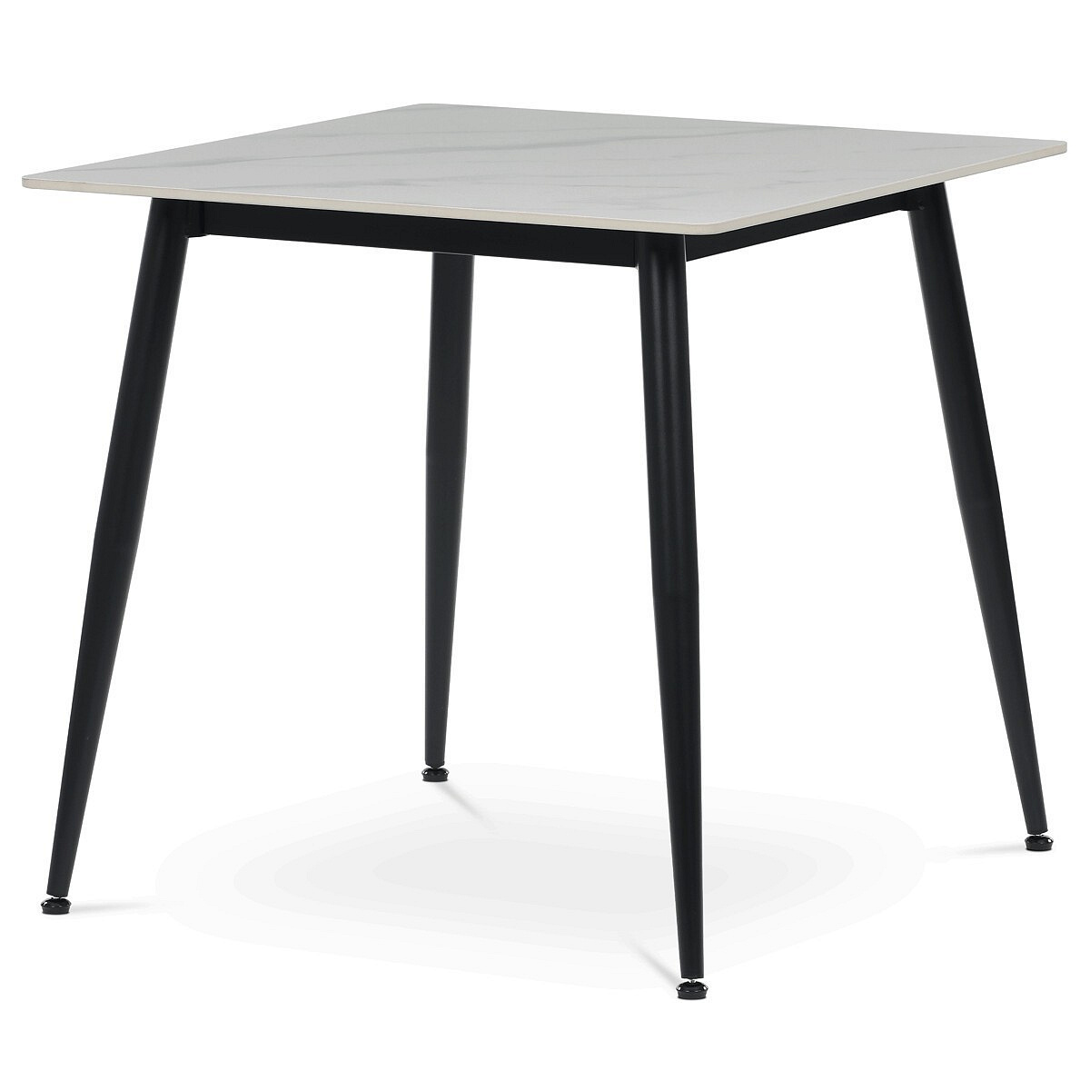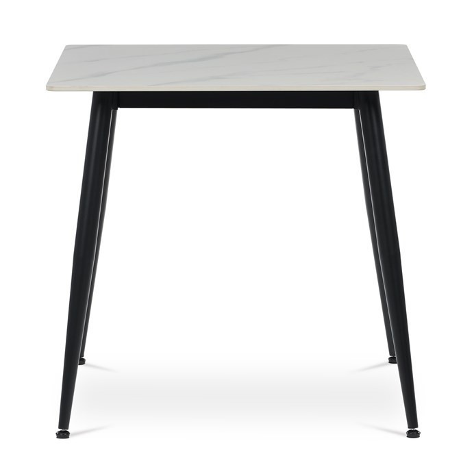 Jídelní stůl o rozměru 80x80 cm z kolekce Autronic nabízí moderní kombinaci bílé keramické desky s mramorovým dekorem a černých kovových nohou. Deska je vyrobena z matné keramiky, která je odolná vůči poškrábání a snadno se udržuje, což zajišťuje dlouhodobou estetiku i funkčnost. Stabilní kovové nohy s práškovým lakem doplňují design a jsou vybaveny rektifikačními patkami pro vyrovnání nerovností podlahy, což zvyšuje stabilitu stolu. Čtvercový tvar a kompaktní rozměr stolu jej předurčují pro menší jídelní prostory či kuchyně, kde je kladen důraz na praktičnost a styl. Nosnost stolu odpovídá běžnému domácímu použití, přičemž jeho konstrukce je navržena pro dlouhou životnost.