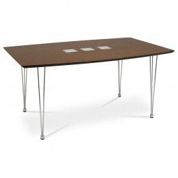 Jídelní stůl 150x90x75 cm, MDF - dýha a sklo, moření hnědé, kovové nohy - chrom