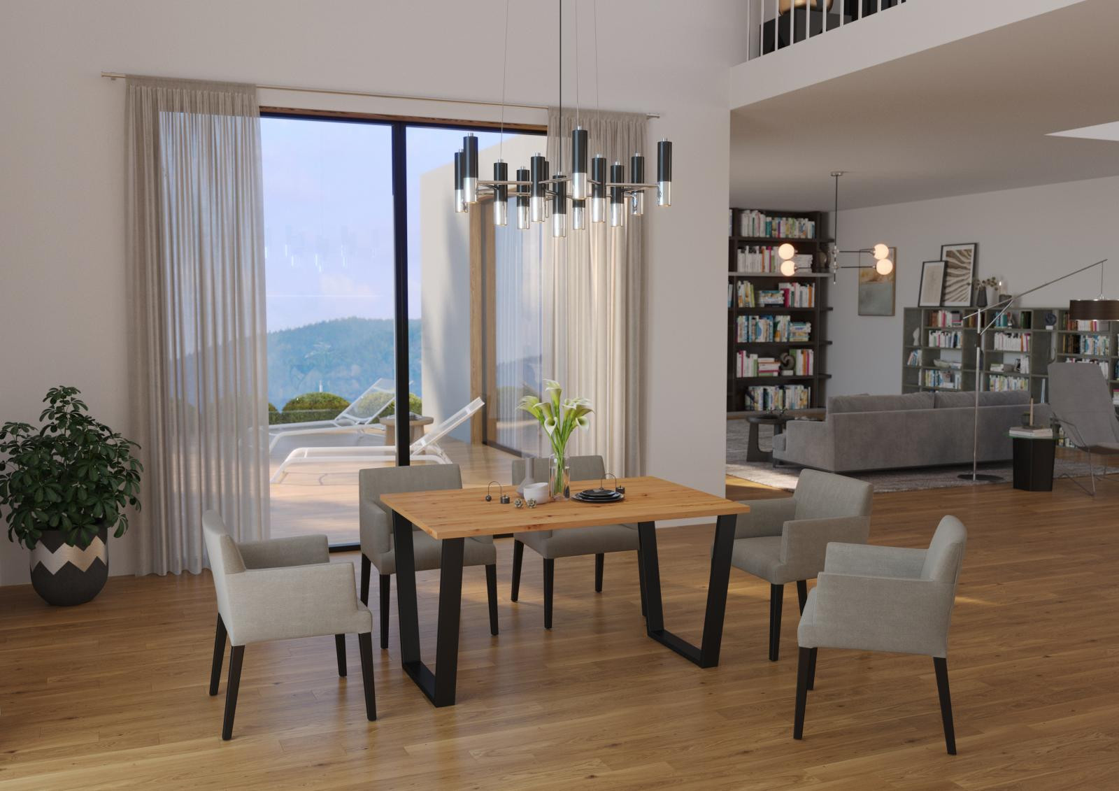 Jídelní stůl Cyril je vyrobený v nadčasovém stylu, který se hodí do každé moderní domácnosti. Deska stolu je z lamina tl.28 mm, nohy jsou kovové, matné v černé barvě. Stůl se skvěle hodí nejen do jídelny, ale i do kuchyně nebo do jídelního koutu v obývacím pokoji. Stůl je dodávaný v demontu. Součástí balení je montážní návod včetně všech spojovacích prvků. Vlivem nastavení monitorů, nebo displejů telefonů, se zobrazení barev na fotografii může od skutečnosti lišit. Cena je uvedena za stůl. Vyobrazené doplňky a dekorace nejsou v ceně.