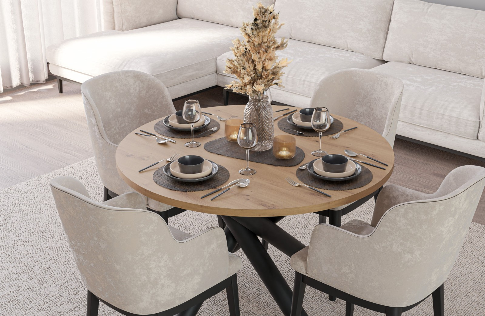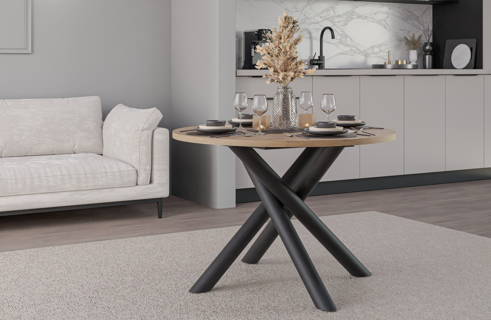 Jídelní stůl Osman je vyrobený v nadčasovém stylu, který se hodí do každé moderní domácnosti. Deska stolu je z lamina tl.15 mm, nohy jsou černé kovové ve stylu "pavouk". Stůl se skvěle hodí nejen do jídelny, ale i do kuchyně nebo do jídelního koutu v obývacím pokoji. Stůl je dodávaný v demontu. Součástí balení je montážní návod včetně všech spojovacích prvků.