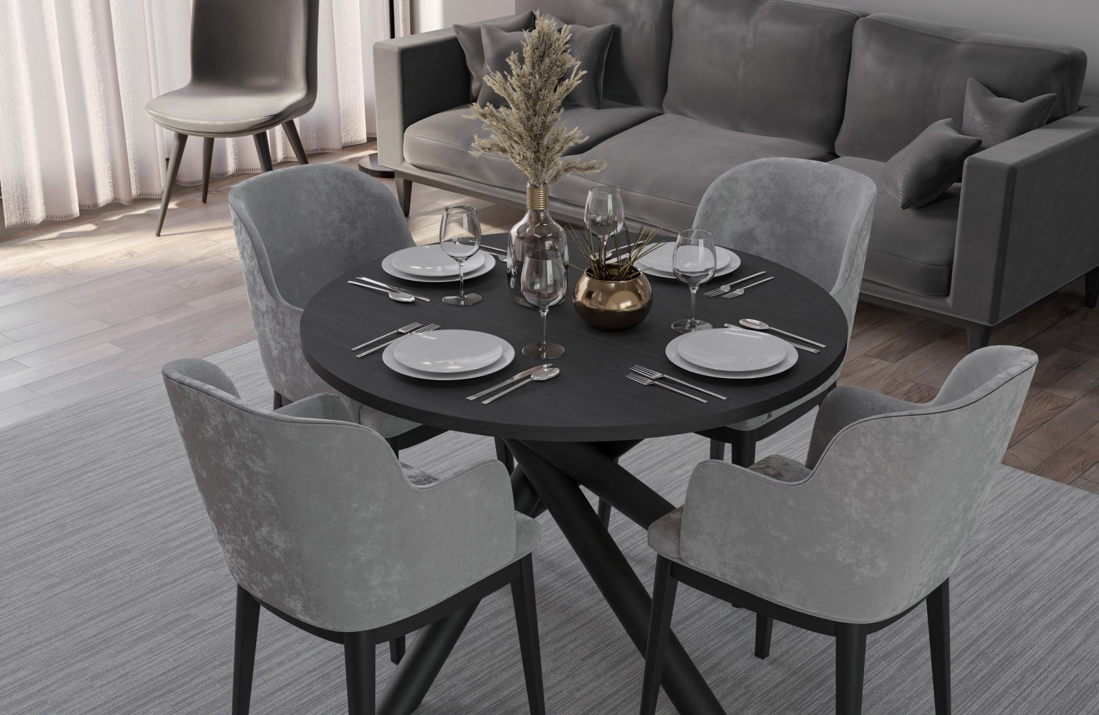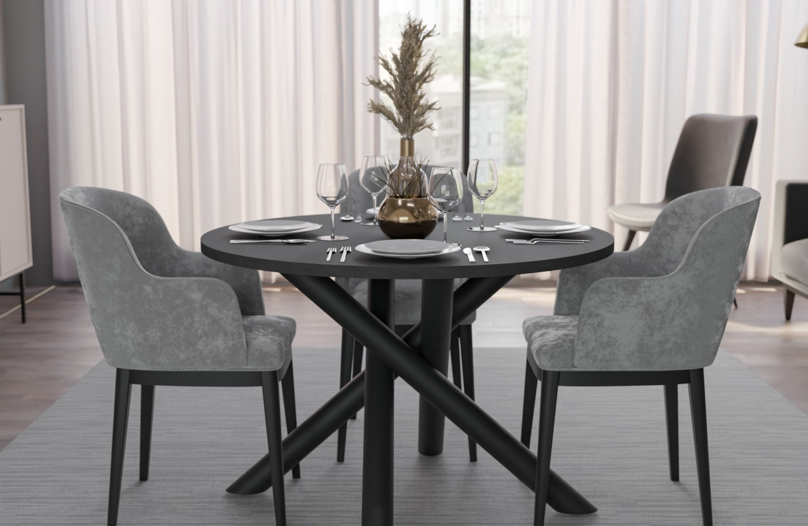 Jídelní stůl Osman kulatý jasan portland tmavý