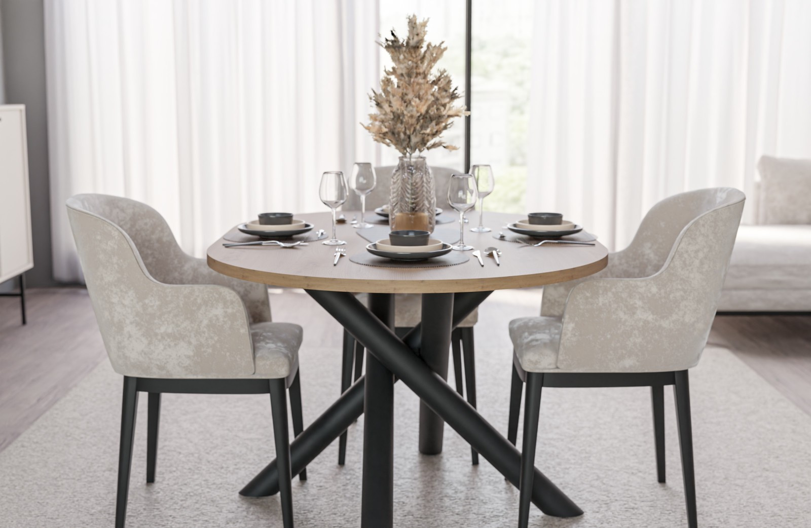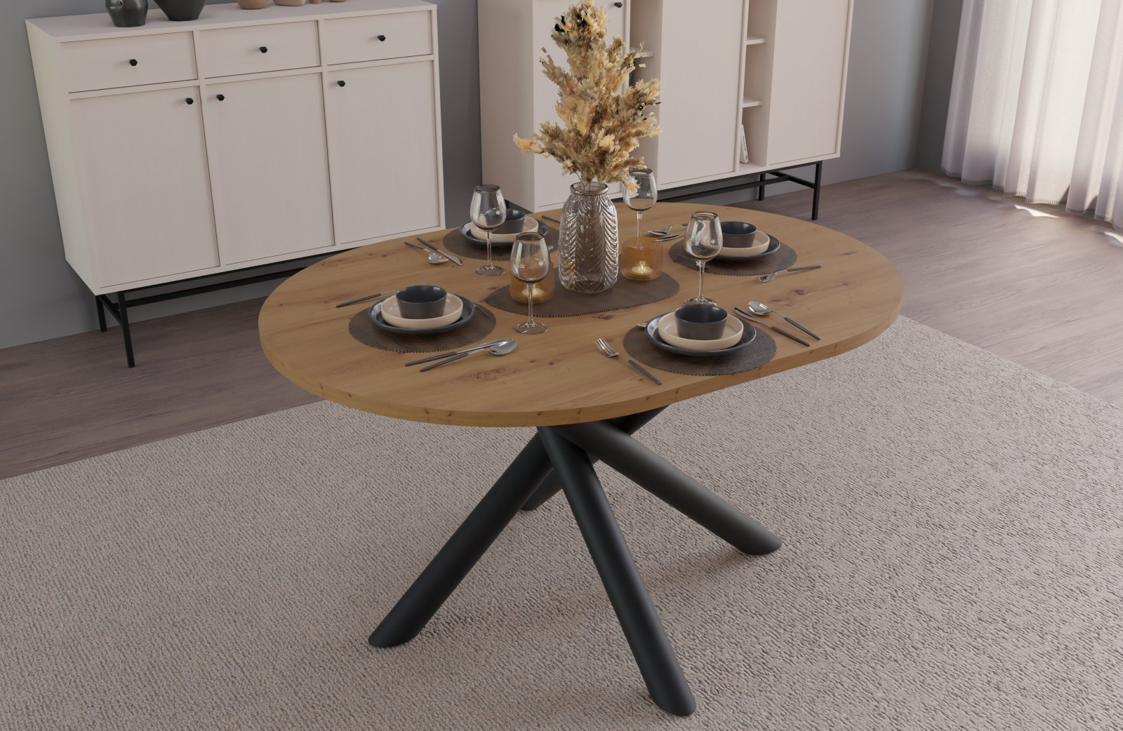 Jídelní stůl Osman je vyrobený v nadčasovém stylu, který se hodí do každé moderní domácnosti. Deska stolu je z lamina tl.15 mm, nohy jsou černé kovové ve stylu "pavouk". Stůl se skvěle hodí nejen do jídelny, ale i do kuchyně nebo do jídelního koutu v obývacím pokoji. Stůl je dodávaný v demontu. Součástí balení je montážní návod včetně všech spojovacích prvků.