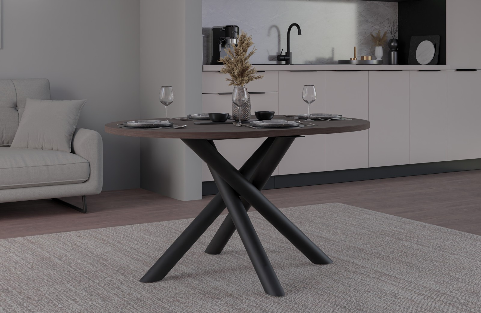 Jídelní stůl Osman je vyrobený v nadčasovém stylu, který se hodí do každé moderní domácnosti. Deska stolu je z lamina tl.15 mm, nohy jsou černé kovové ve stylu "pavouk". Stůl se skvěle hodí nejen do jídelny, ale i do kuchyně nebo do jídelního koutu v obývacím pokoji. Stůl je dodávaný v demontu. Součástí balení je montážní návod včetně všech spojovacích prvků.