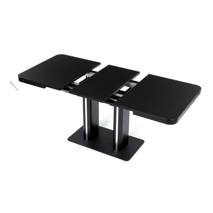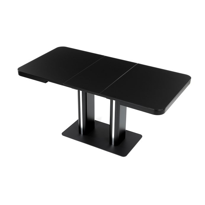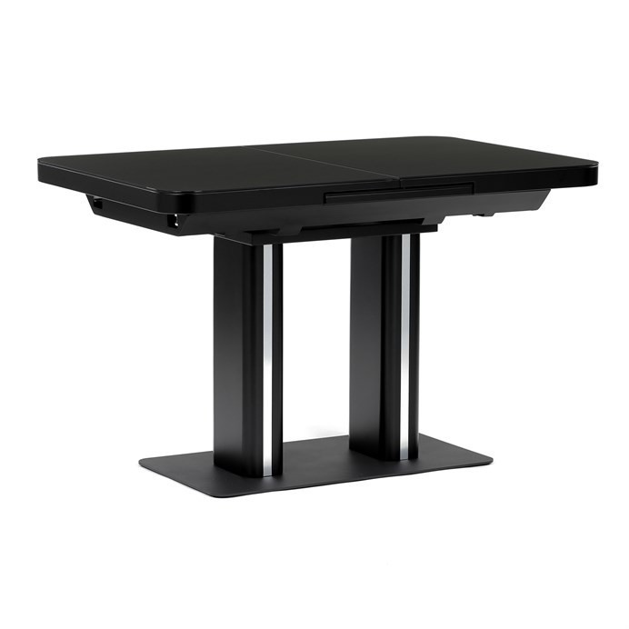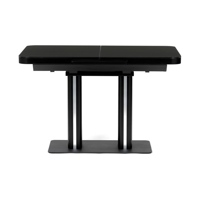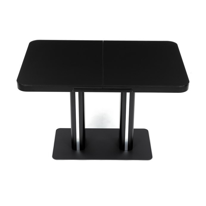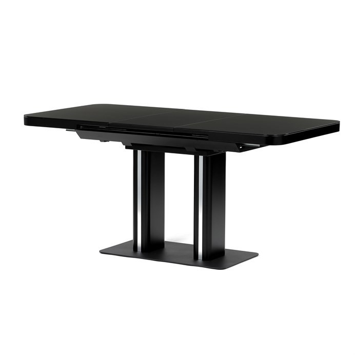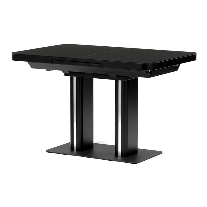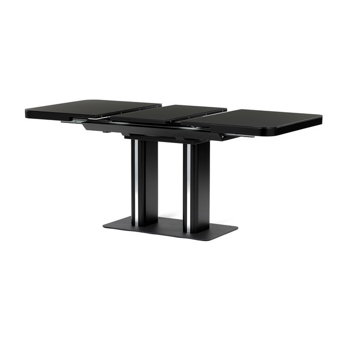 Jídelní rozkládací stůl HT-D1926 BK značky Autronic vyniká moderním designem s černou matnou povrchovou úpravou a praktickým automatickým rozkladem, který zvětšuje pracovní plochu z 120 na 160 cm. Deska stolu je vyrobena z tvrzeného černého skla, které zajišťuje vysokou odolnost proti poškrábání a snadnou údržbu, zatímco konstrukce nohou a rámu je z MDF materiálu s černým matným lakem, což přispívá k pevnosti a stabilitě celého stolu. Zaoblené rohy desky nejen zvyšují bezpečnost při používání, ale také dodávají elegantní vizuální dojem. Mechanismus rozkladu je navržen pro jednoduché a plynulé ovládání, což umožňuje rychlé přizpůsobení velikosti stolu podle potřeby. Stabilní podnož s dvojitými sloupky na podstavci zajišťuje rovnoměrné rozložení hmotnosti a vysokou nosnost, což činí stůl vhodným pro každodenní použití v domácnostech i menších kancelářských prostorách. Celková výška stolu je 75 cm, šířka 80 cm a délka v základním stavu 120 cm, která se po rozložení prodlouží o 40 cm.