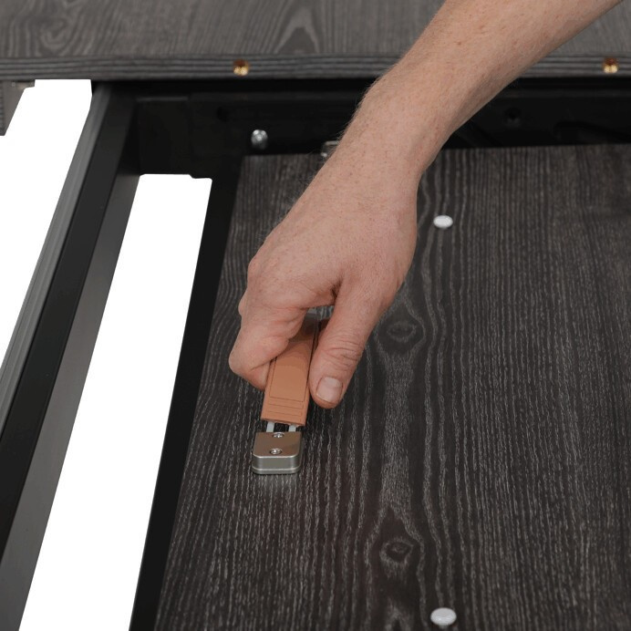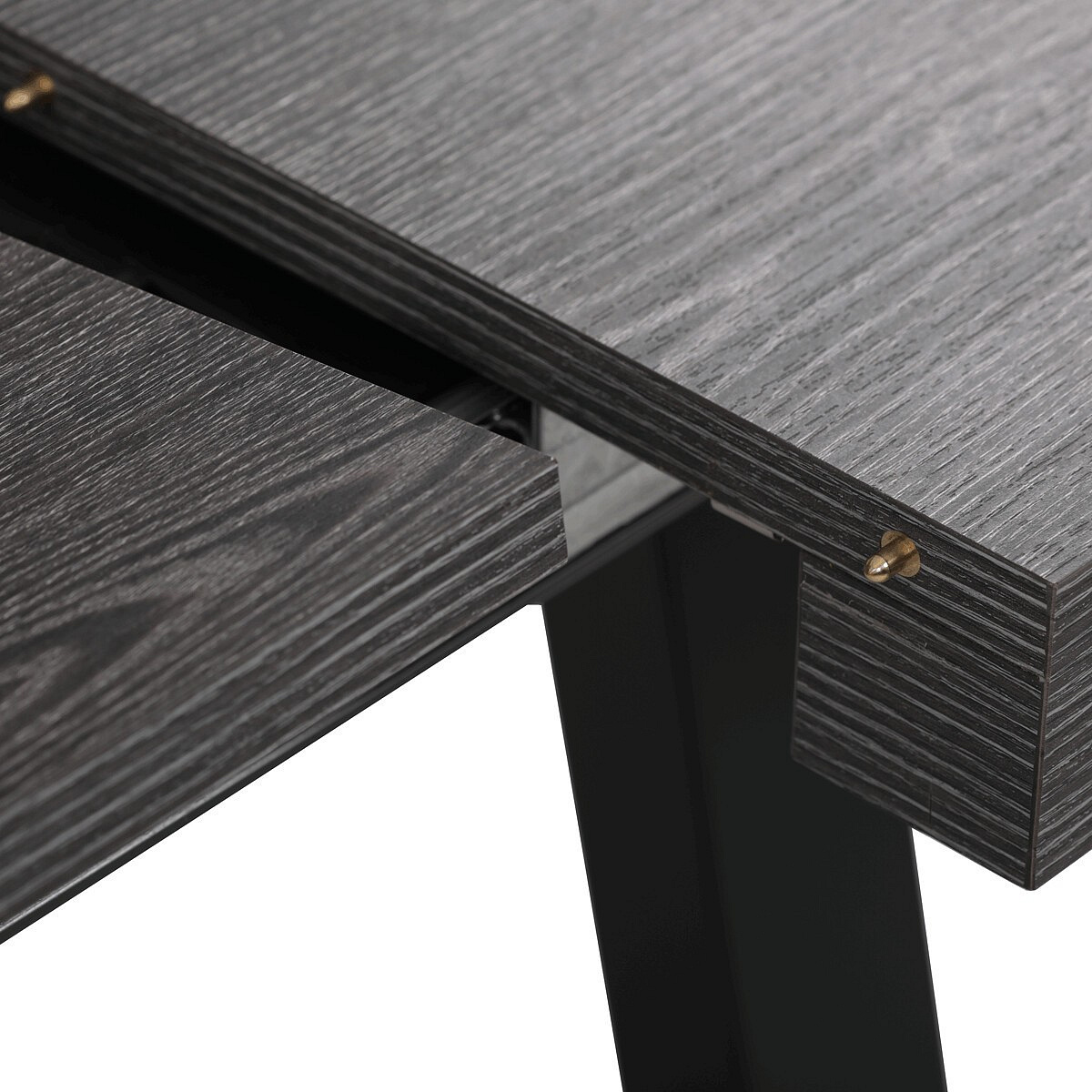Jídelní stůl HT-R5624 GREY nabízí praktické rozkládání s celkovými rozměry 160+80x90x75 cm, což umožňuje flexibilní využití prostoru. Deska je vyrobena z lamina s dekorem šedého dubu a je opatřena ABS hranou, která zvyšuje odolnost proti poškození a usnadňuje údržbu. Matný povrch dodává stolové desce moderní vzhled a zároveň minimalizuje viditelnost otisků prstů. Stabilní kovová podnož v černé barvě zajišťuje pevnou oporu a dlouhou životnost stolu. Díky rozkládacímu mechanismu je stůl vhodný jak pro každodenní použití, tak i pro větší společenské události.