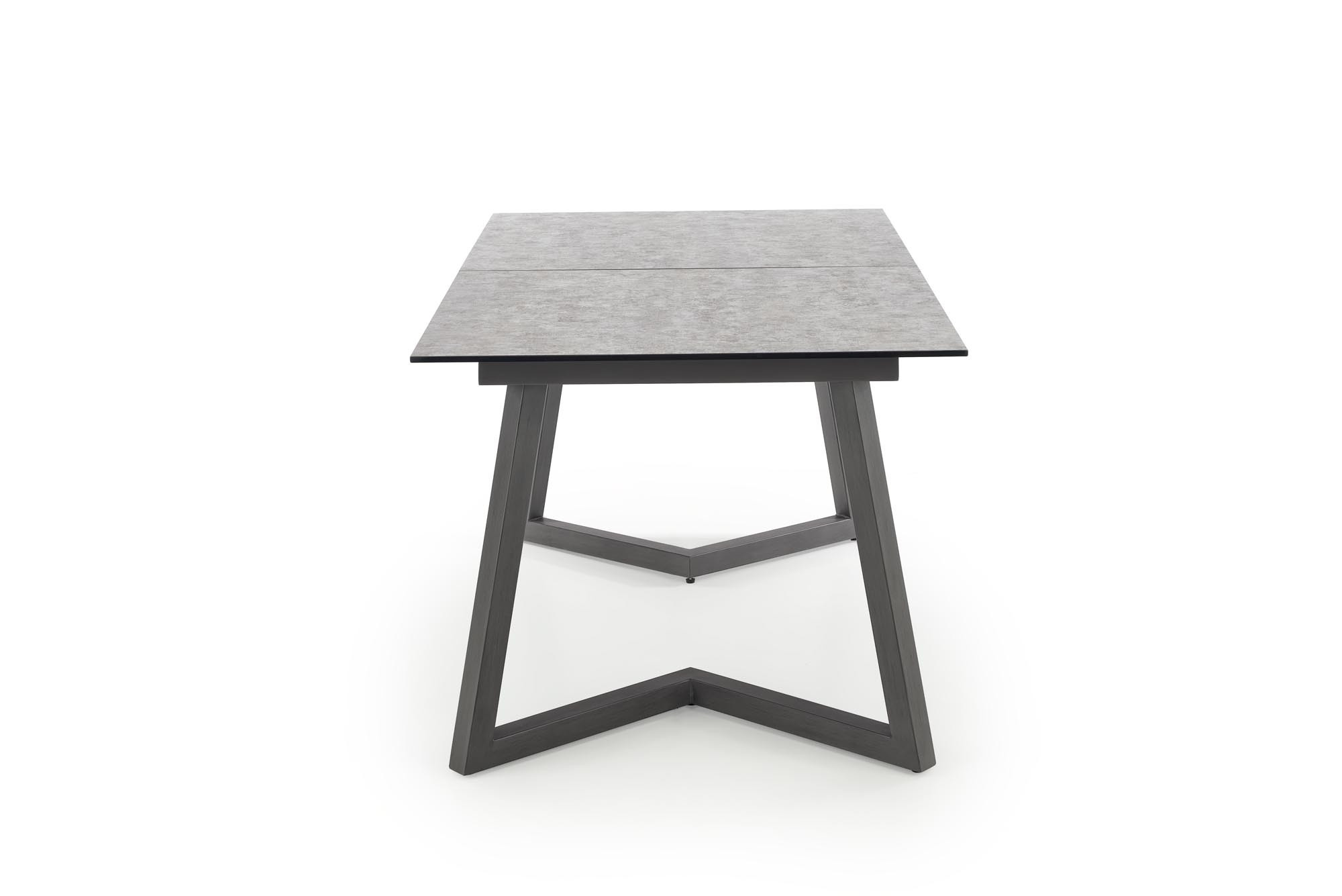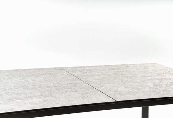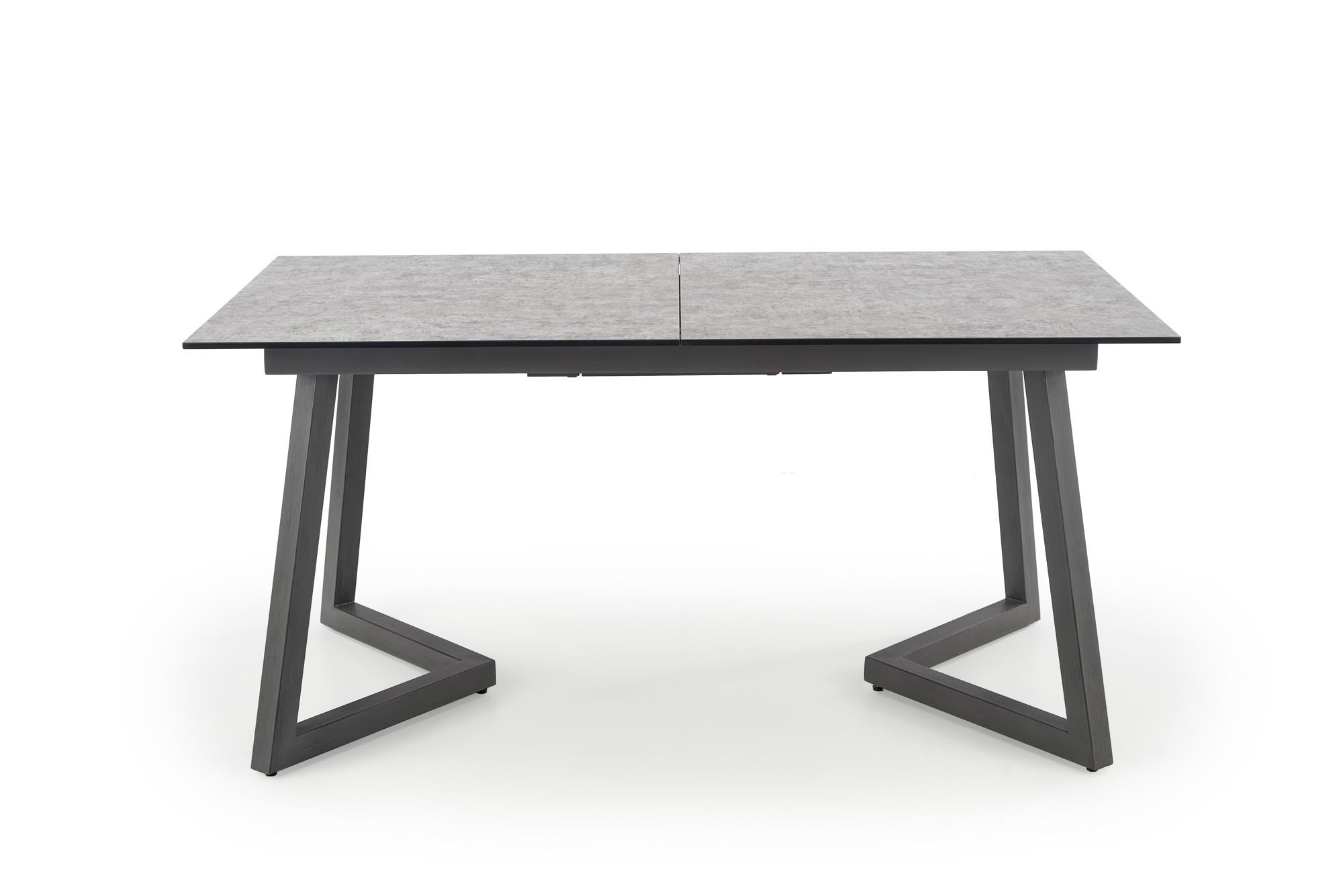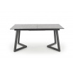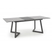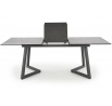 rozkládací stůl, rozměry: 160-210/90/76 cm, materiál: sklo / lakovaná MDF / práškově lakovaná ocel, barva: deska - světle šedá / tmavě šedá, nohy - tmavě šedé