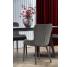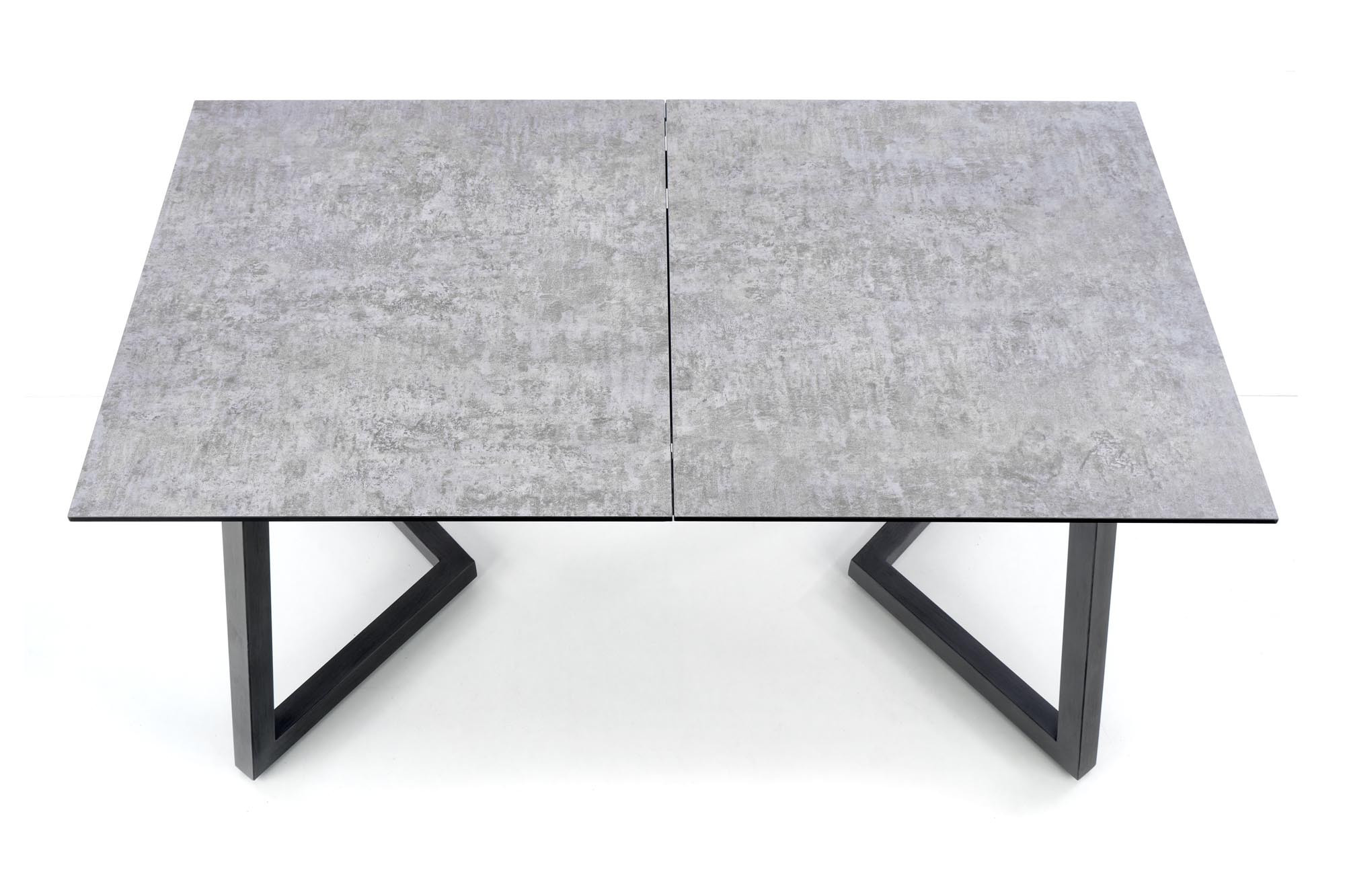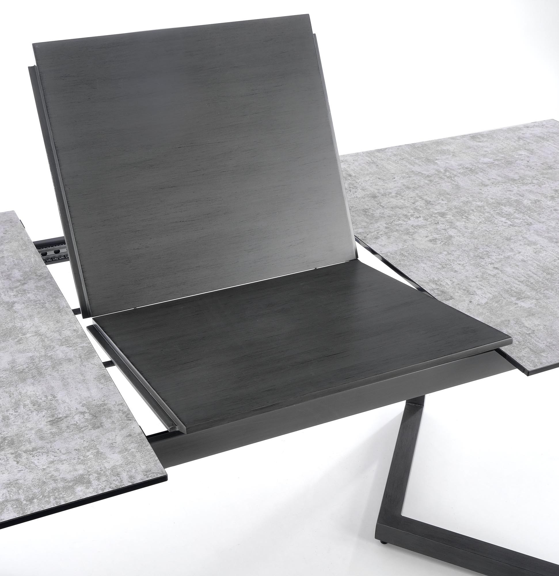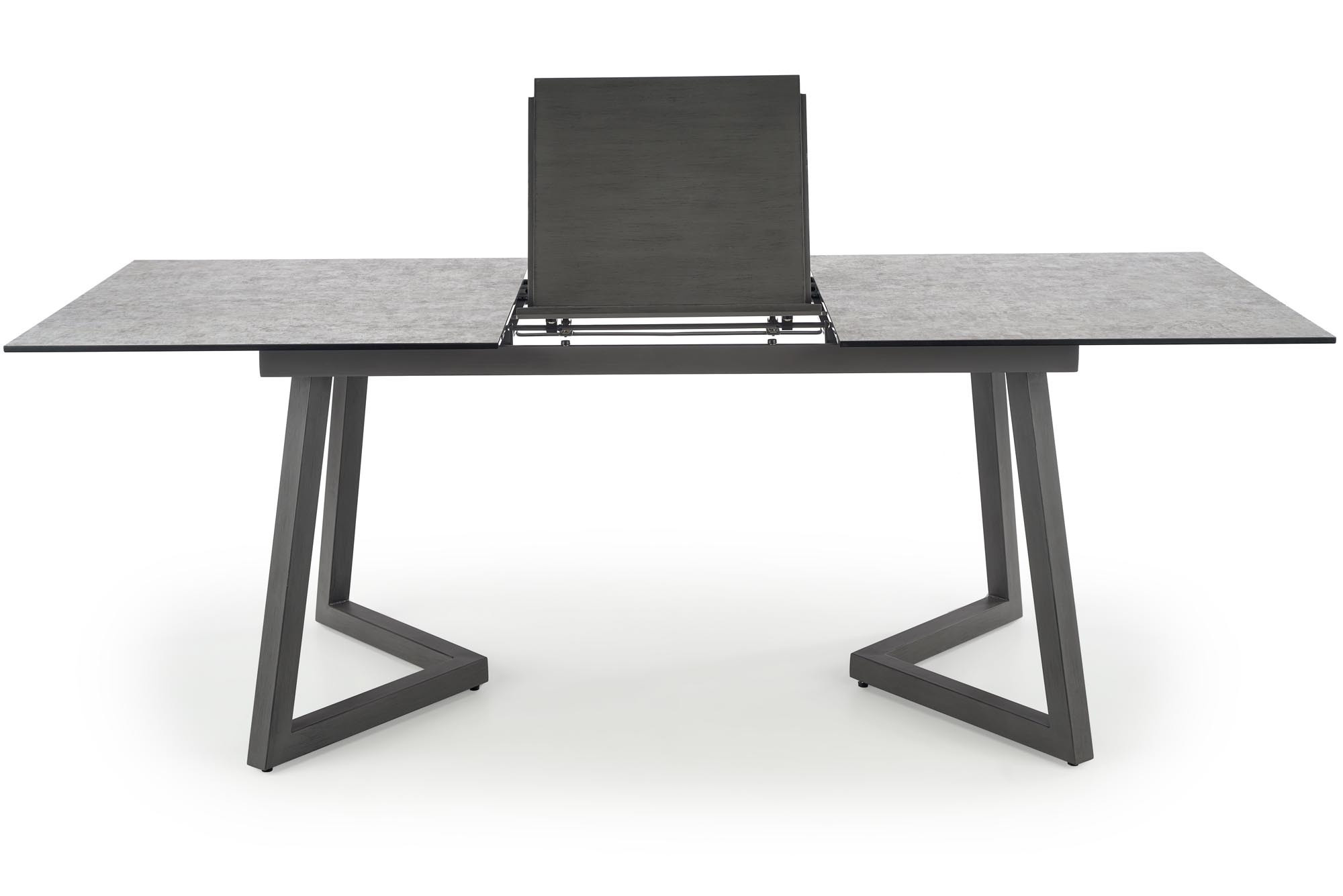 rozkládací stůl, rozměry: 160-210/90/76 cm, materiál: sklo / lakovaná MDF / práškově lakovaná ocel, barva: deska - světle šedá / tmavě šedá, nohy - tmavě šedé